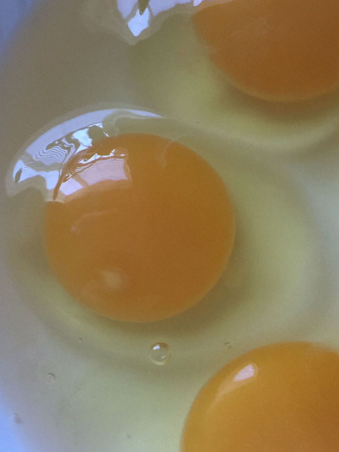 The white spot with the slightly darker yolk around it....I've heard the "bullseye" is a sign of fertilized egg.