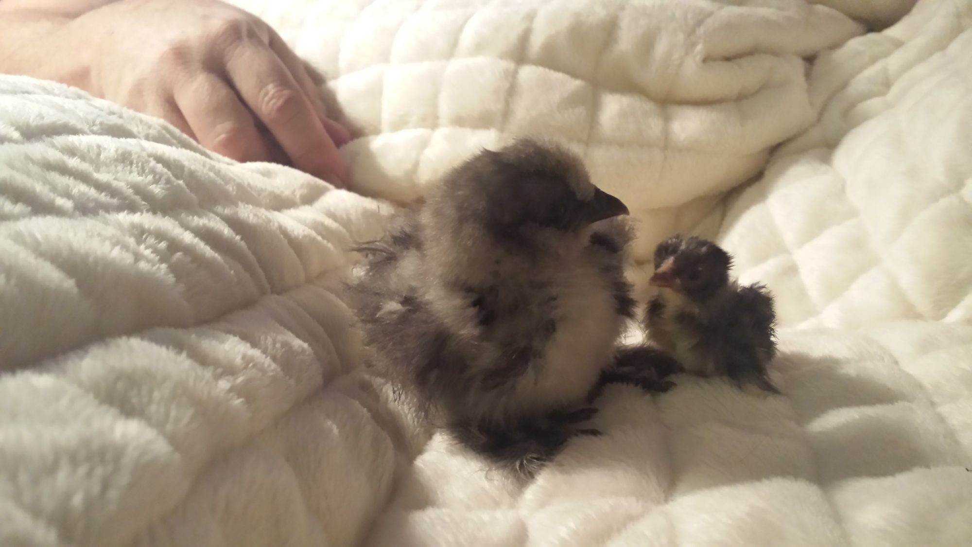did you see the picture? it is standing next to a 2 week old silkie that is laying down. this darker chick is 24 hrs. old silkie . it is twice the size.