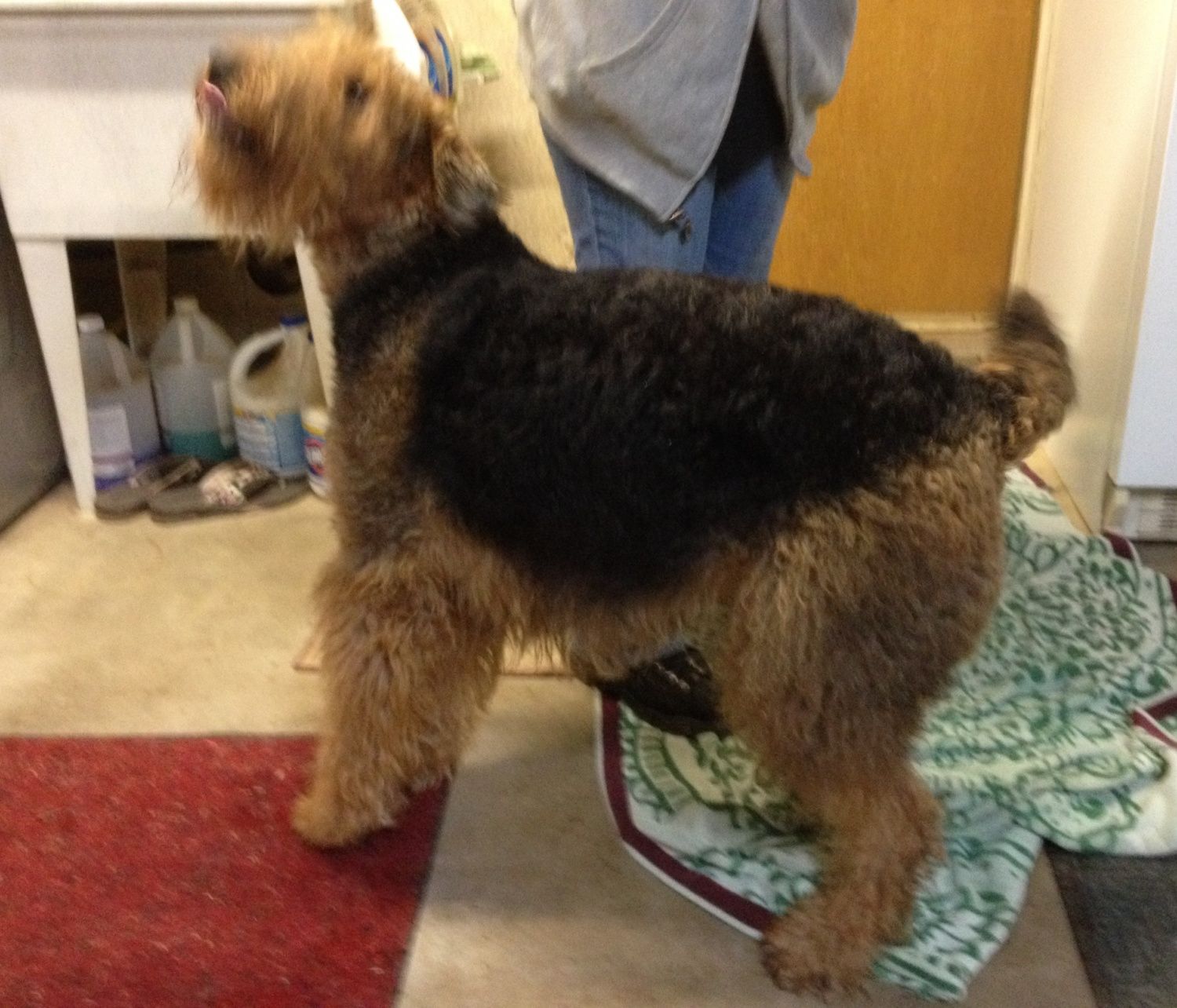 Now that's a BIG dog! A Neo is too big for me! Ya'll should know better than to ask me anything dog. I share WAY too much! Here's a REALLY LONG story. Airedales. Big Airedales, I love the breed. There's one bloodline that I stuck with. Mine all came from AK or TX except 1. There was a breeder in TX that had superb dogs. Love that woman. She was quite old. Her DD helped her on the cattle ranch and with the dogs. When I lost my Serendipity, I called her. She had a 6 mo old pup that she said was too pretty to sell. Her DD had been killed unloading stock panels. She'd had no help and lives 60 miles from town. She'd been having a bad time with ticks and porcupines. Lost some dogs. So, I drove to WA and bought a pup, same foundation line. 6 months later, this is so sad, she called and asked if I still wanted to buy that pup. Her DH had had a stroke, she had no one to help her with the dogs or him.They were in trouble. They were selling off the cattle and the dogs. Joyce, 82 said she wanted to keep 1 Dale, that she'd never been without one. DH and Pops took off for TX and picked up that pretty pup that I bought and her brother, now 1 year old, had never been out of a kennel or even bathed, loaded with ticks and larvae, anemic. I got them all fixed up and healthy, trained up the male for her and sent it back on a transport. The transport gal (what an angel) spent 2 days bathing and tick dipping all the dogs. She brought me 2 more pups to clean up and sell for Joyce, as she couldn't get a dog to the airport. Those pups $ covered their vet bills and the transport. She was able to place most of the older dogs with breeders. So that's my long Airedale story.Airedale pics when you can please. I considered that breed, but wasn't sure I could manage stripping the coat. Sounds ouchy.