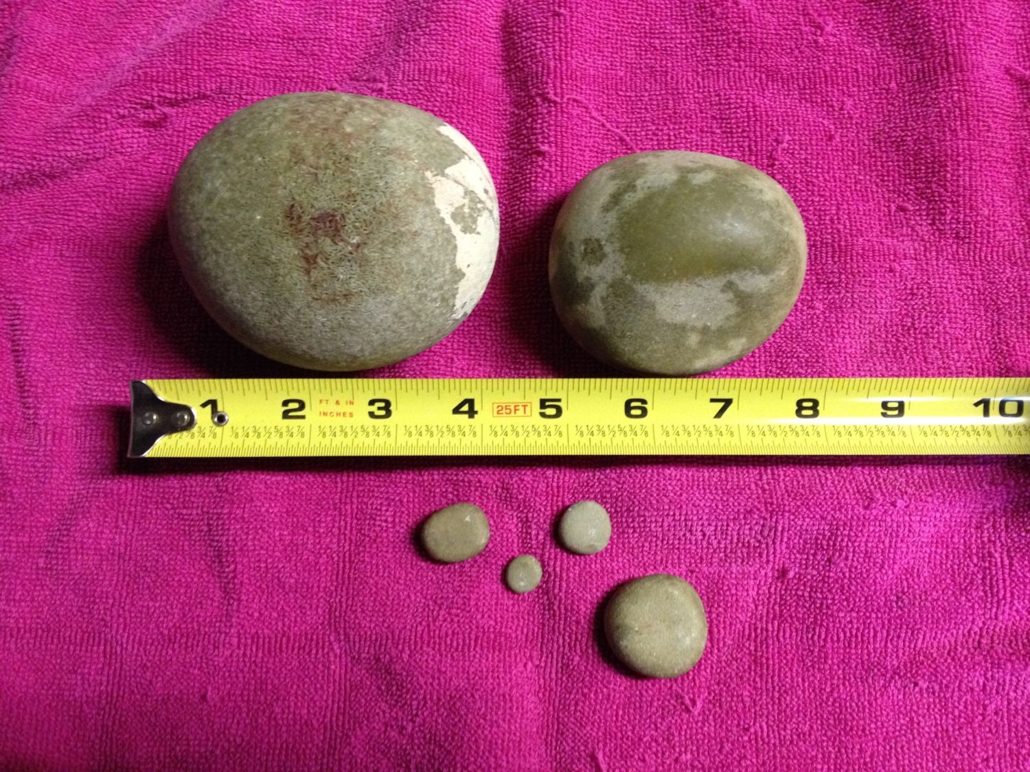 I hope ya'll find this interesting. These are stones that calcify in the stomach. They start as a sand grain and keep growing if they aren't passed. Virtually unheard of in the midwest. As I understand it, alfalfa hay, which is really our primary feed has too much magnesium? It causes stones to grow? Some vets say it's from feeding on the ground? There is no cause. Some horses get them, some don't. Here's sone of the smaller ones they removed during surgery. They have the oddest smell. Sulphur. you can see the crystals on the side that was growing, then, on the side that was near the stomach wall, it's polished shiny.. Crazy stuff.