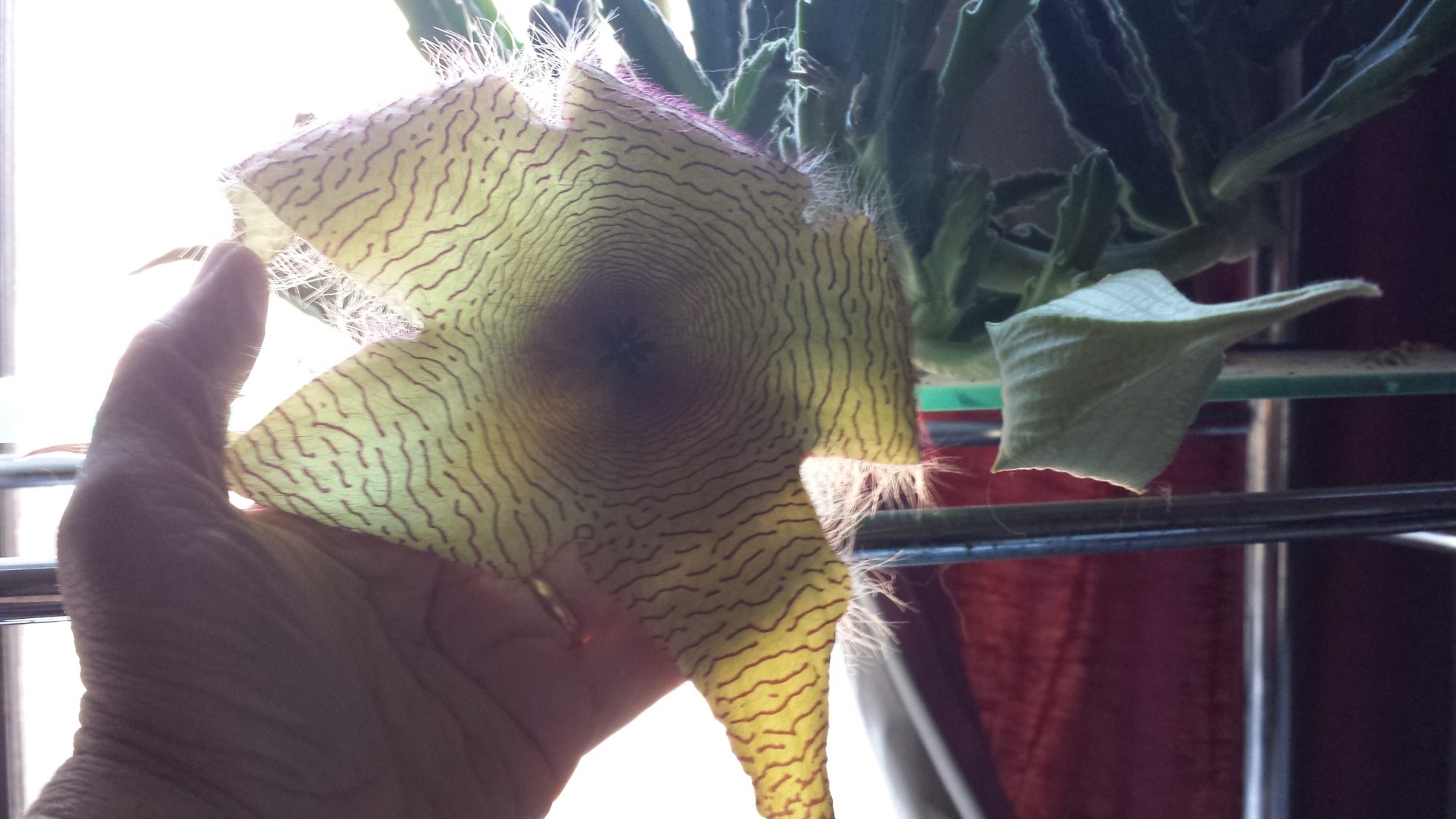 Stapelia gigantea. Starfish flower. It smells like something died and is polinated by flies.