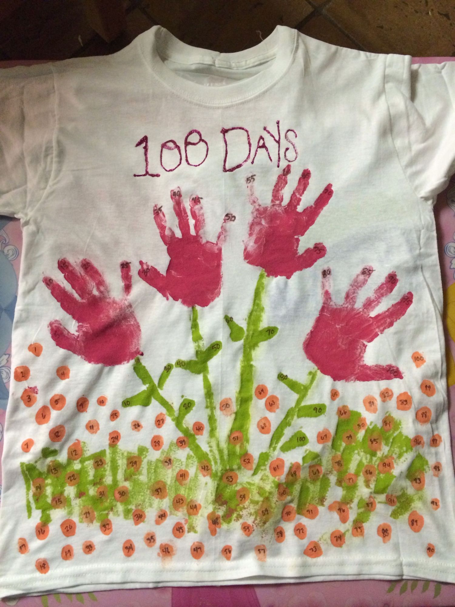 DD's shirt we painted last night. Counting to 100 by 5s, 10s, and 1s.