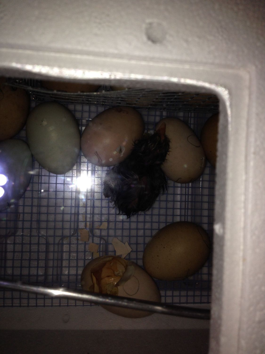 granny you wont know till it hatches, the polish eggs I put in the bator I snuck a peak, seems only one is viable. Harmony was upset about it, it was day 5 but we can see in them very good. what a downer.aww, You dont get to watch ? explains the "yellow blob" . LOL Im thinking the mystery egg must be brown leghorn judging by size of chick and not polish.![]()