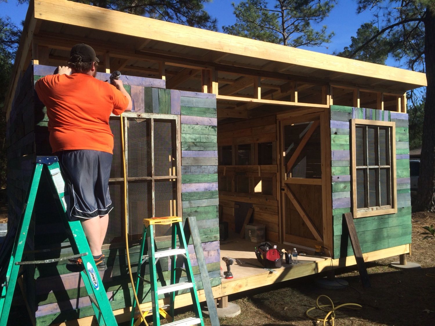 The window needs to be framed. There's one pop door left to install. Then the rafter piece on the north side. A frame for the goat window. And DONE.![]()