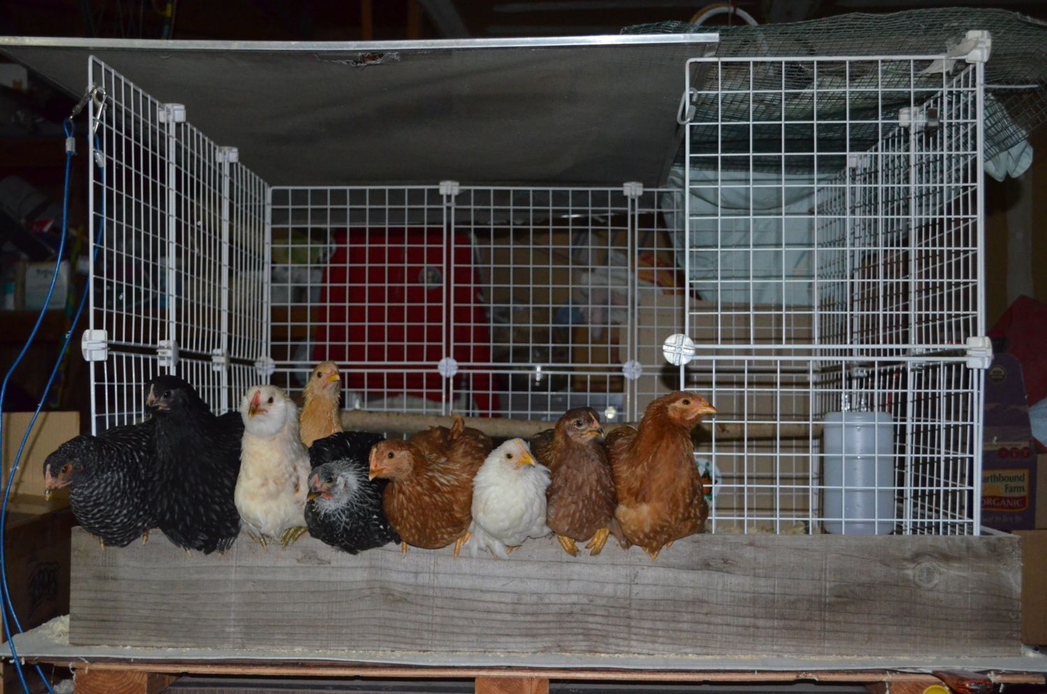 Here's when my first chicks were growing up. Not enough room for all 10 to perch.