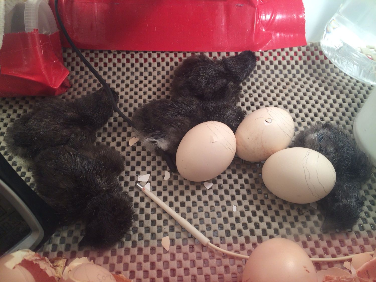 It's def too cold out there for 5 babies and a 40w bulb. They'll be fine in the bator til morning.
