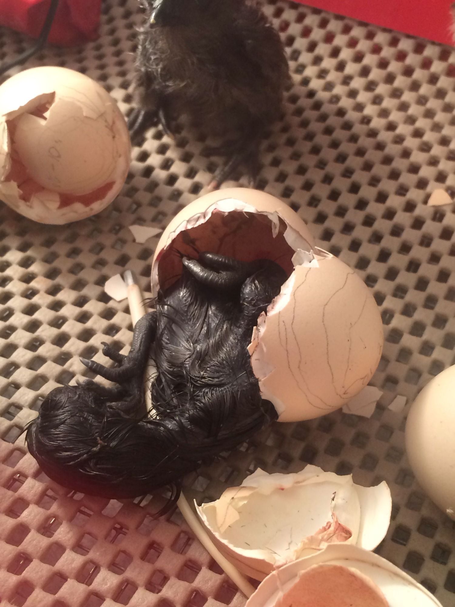 getting after it.......good job gal.Only 8 went to lockdown, but that iffy egg was dead so I'm not counting it. 7 hatched out of 7 that were alive. I think egg 8 quit around day 14.