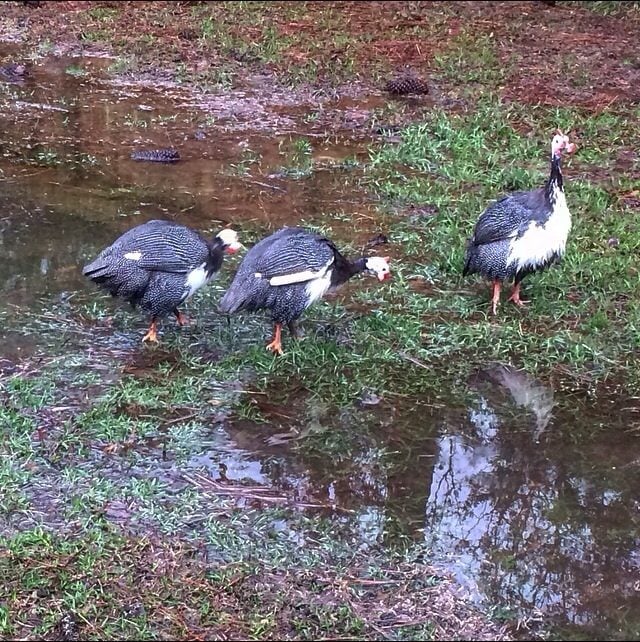 Here's my guineas digging up worms.