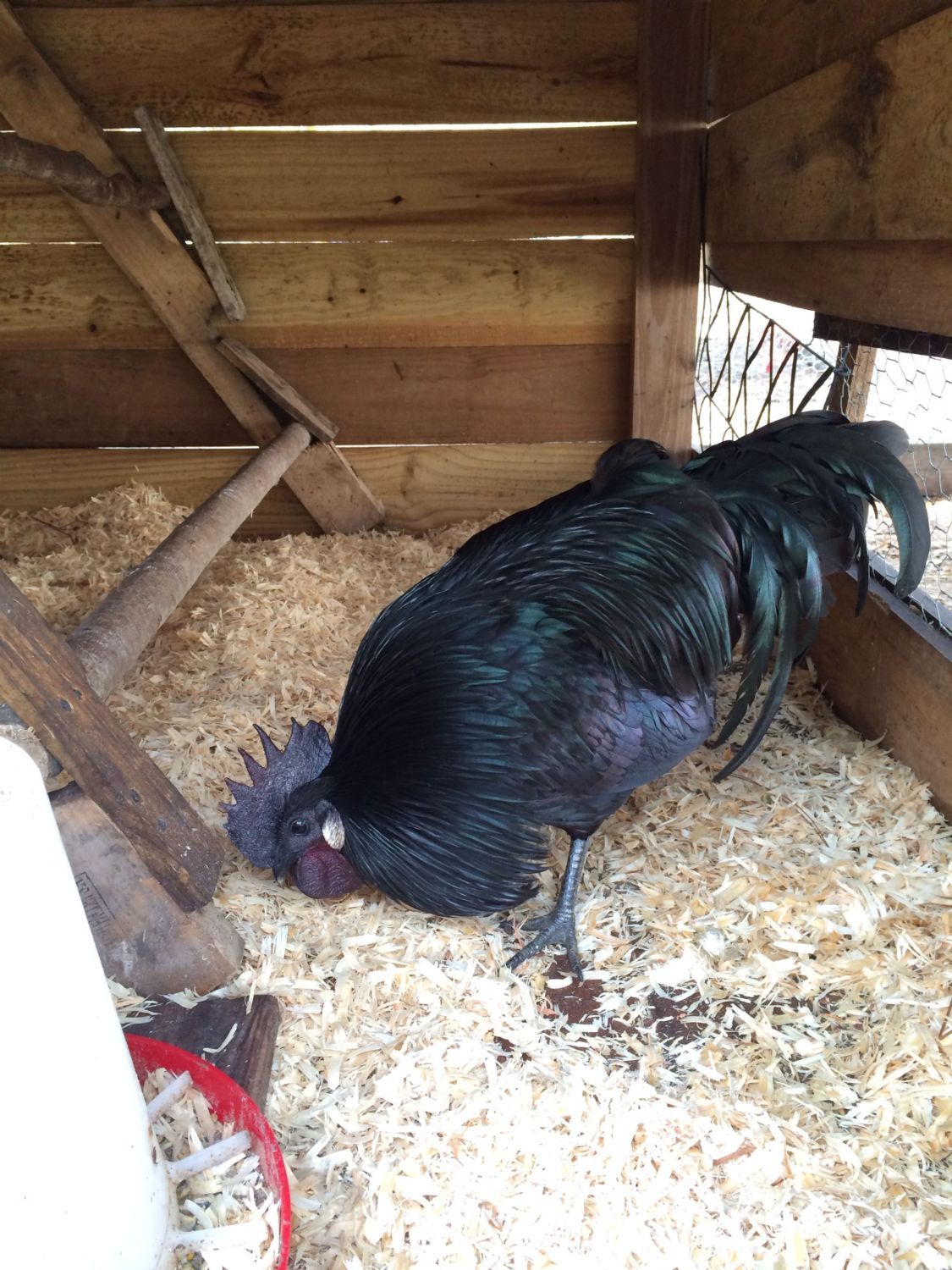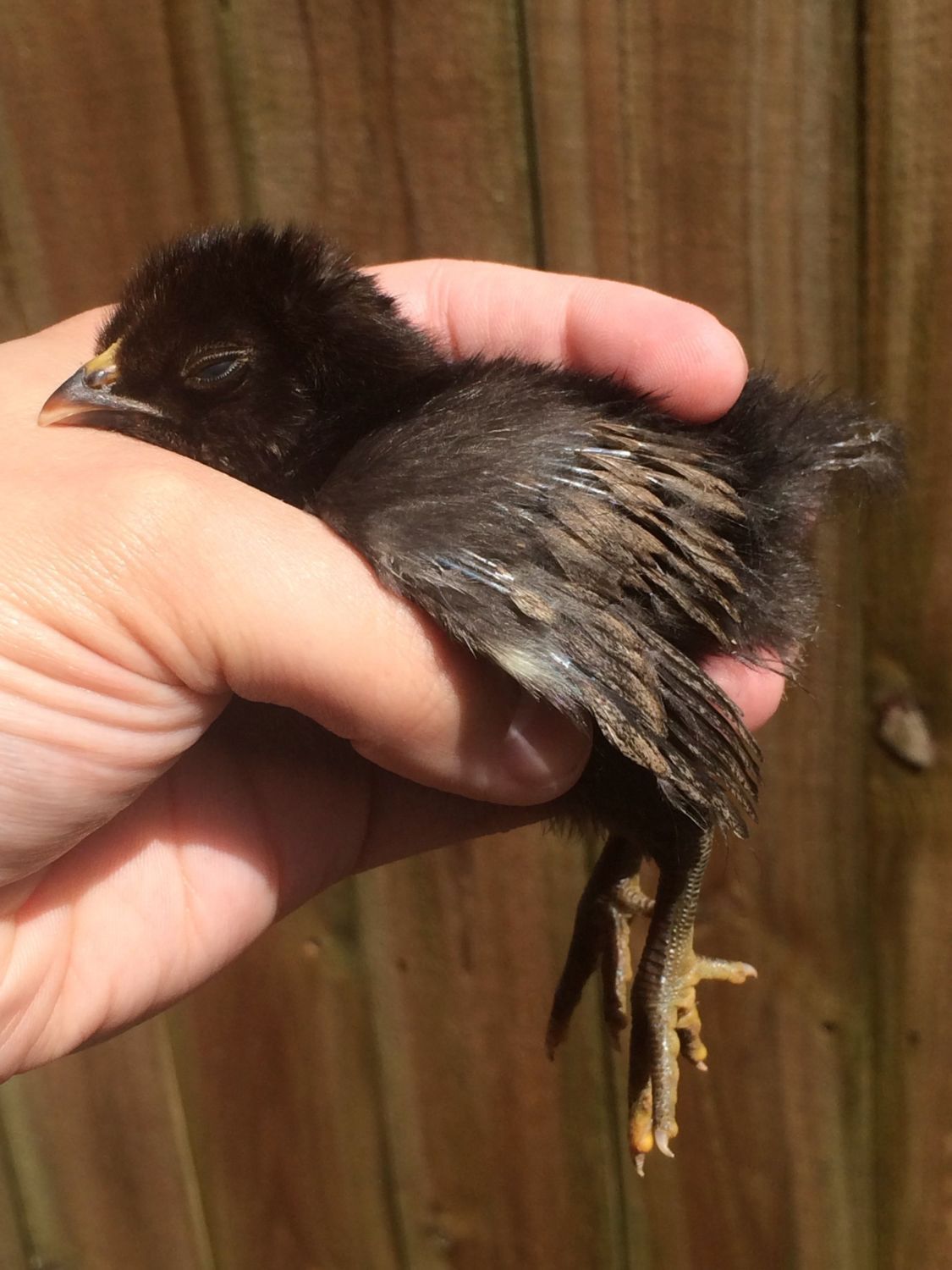 The last time I posted the bugs we all decided they weren't mites. I sevined the crap out of the tractor and let it sit awhile before I put them in. But there they are, living in the crevices of her nest. Choco chick is most likely EE (EE hen under amerecauna x HRIR roo). I saw the RIR breeding hens today, but I don't think he was four weeks ago. Edit: not silkied. I don't have anything with those genes, though KYTinpusher has educated me on the wooly honas, which carry a silky gene. Some of the GFF imports are like that and I :love LOVE :love them.