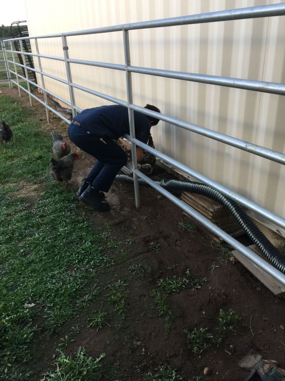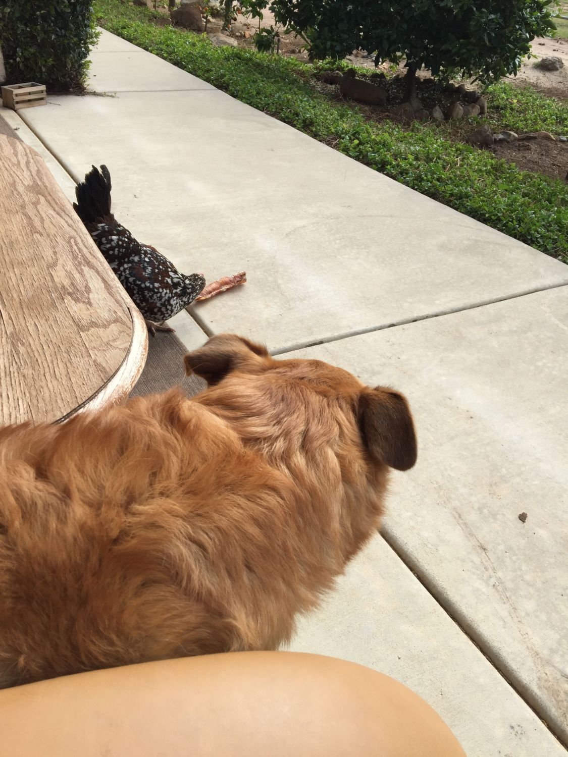 Chicken looks like its heading for a tender spot to peck. LOL