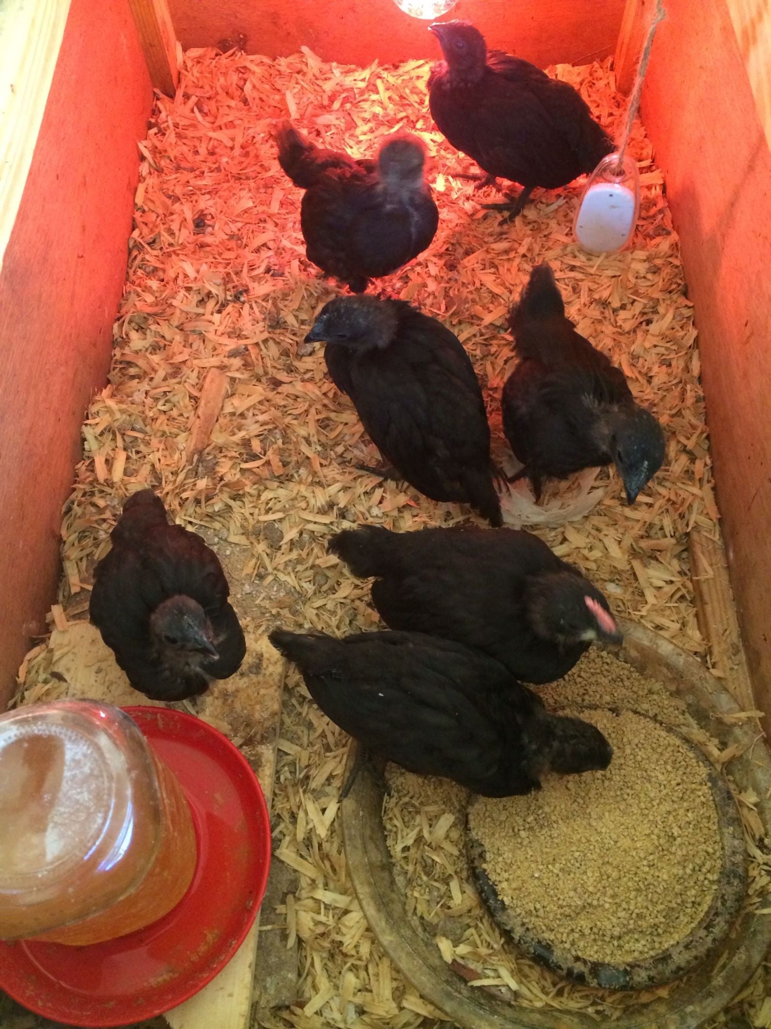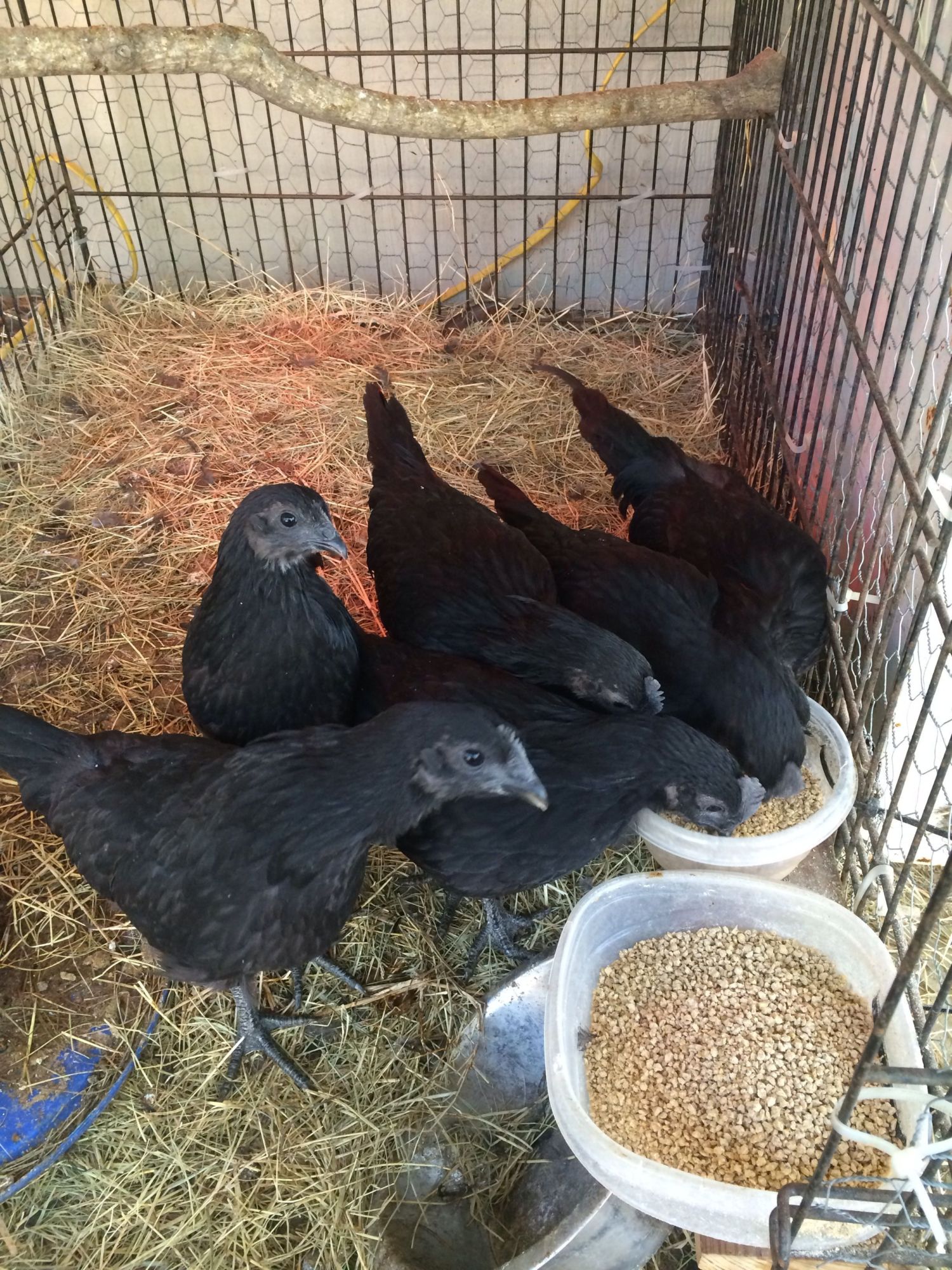 The first batch of honas, bought from a diff breeder and not related. One of these rascals is getting really good at crowing.