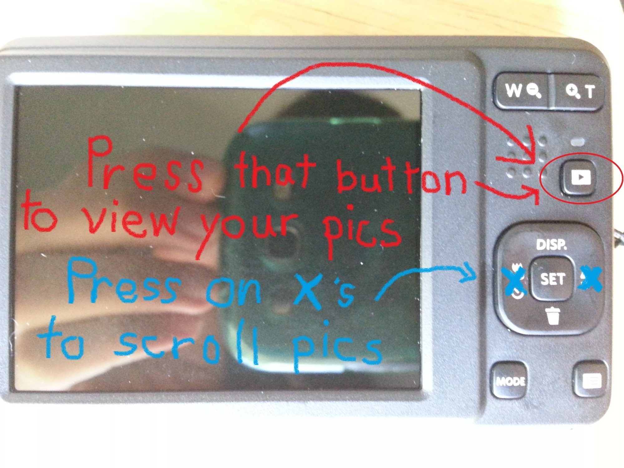 There is a way to get the camera to focus on what you want. When taking the pic, only press the button half way down and wait a bit. It gives the camera a chance to get focused, which you can see on the view screen. When it looks good, press the button the rest of the way. Try it a few times, because you can always erase the ones you don't like. Also, if it's windy, you have to get lucky. It' helps to go back and scroll through the pics to see if you got it. Remember how to view the pics?