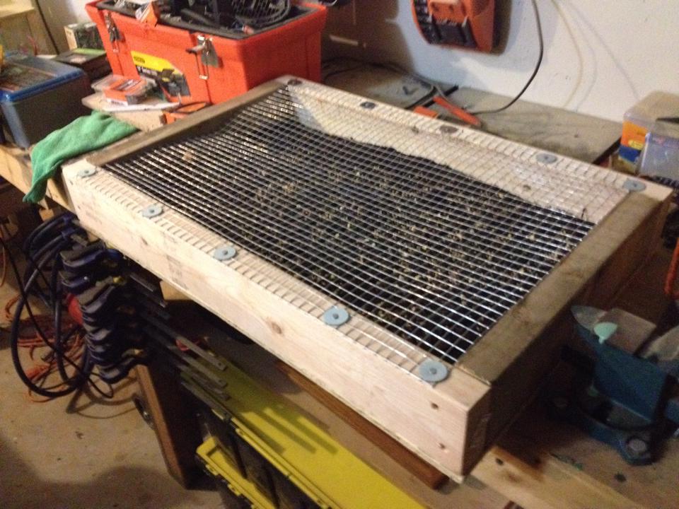 Kept seeing these around so i grabbed some scraps in the garage and threw one together. This is for the girls when they can't free range the yard and they are stuck in the run. I took a handful of birdseed and a handful of rye grass and threw it together in 5 minutes. Can't wait to see it start growing.