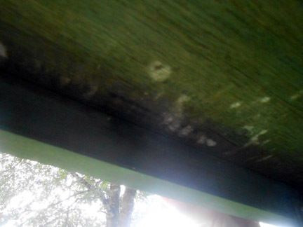 I couldn't find anyone to build me a coop and thought this would work. I was just starting out with chickens and knew I would never have more than a few. So I bought the Precision Pet Hen House Chicken Coop at Tractor Supply in April. It never has been square and the latches haven't worked properly from the start. This wasn't a big issue for me because I don't really use them. The "stay open" latch on the nesting boxes worked so it didn't fall on my head, so I was happy. In went my 3 chickens and all was well. Everything seemed to be fine for the first few months. Then I started noticing water in the tray under the roosting bars. I thought it was rain coming in so I tried changing the direction it faced, sealing it, etc. Nothing worked. A while later, I saw water dripping from the ceiling. Well, right about then, we had about 10 days of rain every day and there wasn't much I could do other than keep them as dry as possible until we had some clear weather. The first couple of days of clear skies, we had clean up duty. When I got to the chicken lot, I cleared the roofs of debris and this is what I found.