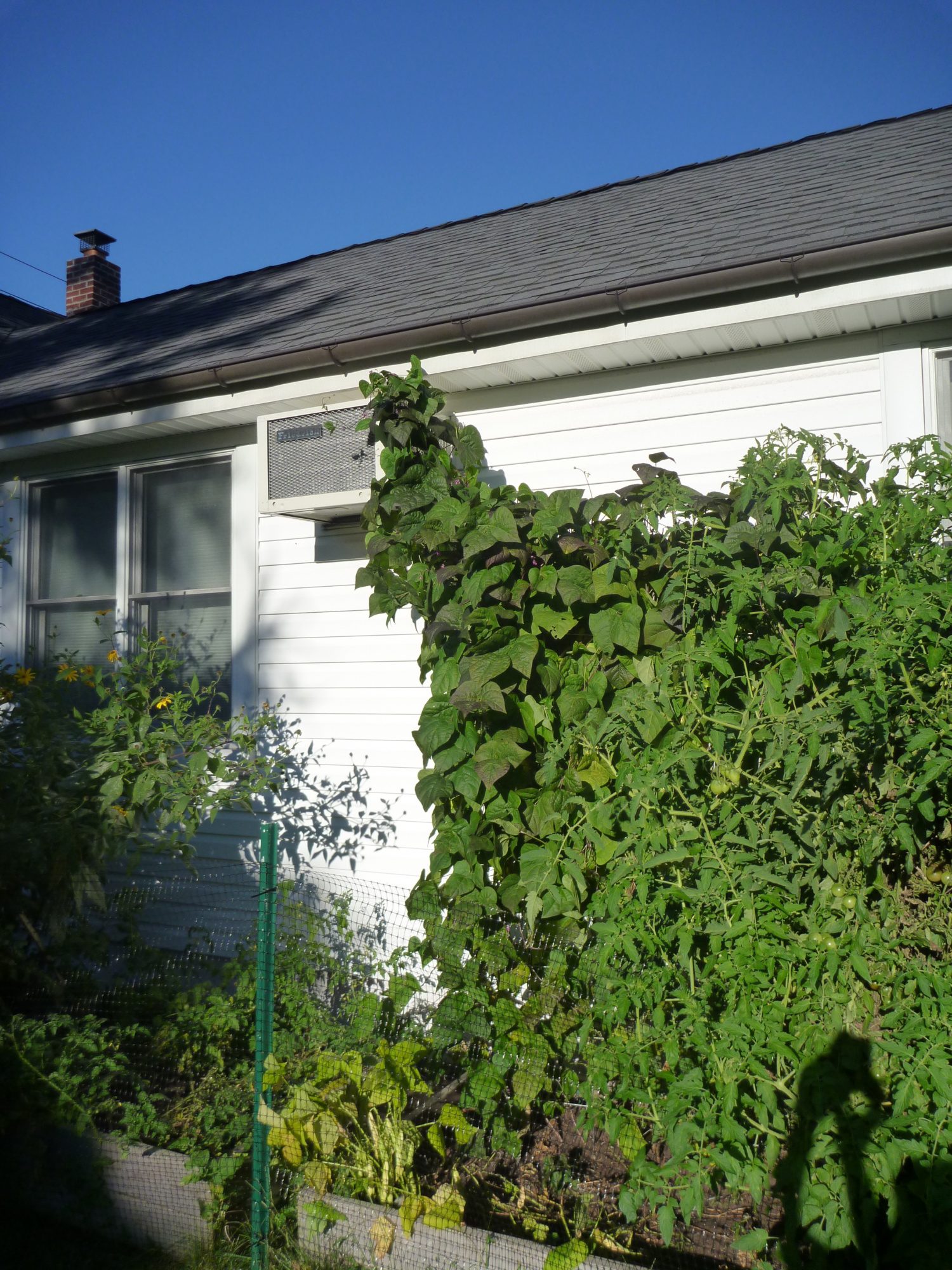Part of the 15 pounds of peppers I picked the other day,organic purple pole beans and the plant they came from I had to get a pic of it because it is literally growing over the AC. I dont think I was disappointed with any of the seeds I got from Burpee this year.