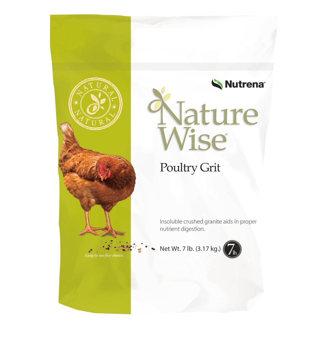 It’s best to give birds free access to grit. They’ll take what they need for proper digestion. Feed stores sell insoluble grit for this purpose. NatureWise poultry feed now offers seven-pound bags of both oyster shell and grit, which is enough to last a small flock all year. The grit is a mix of two particle sizes, so it works for smaller birds and standard breeds.