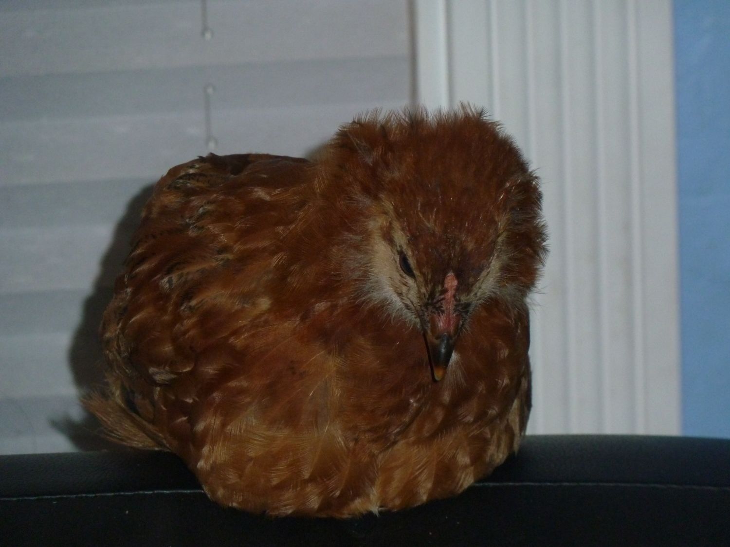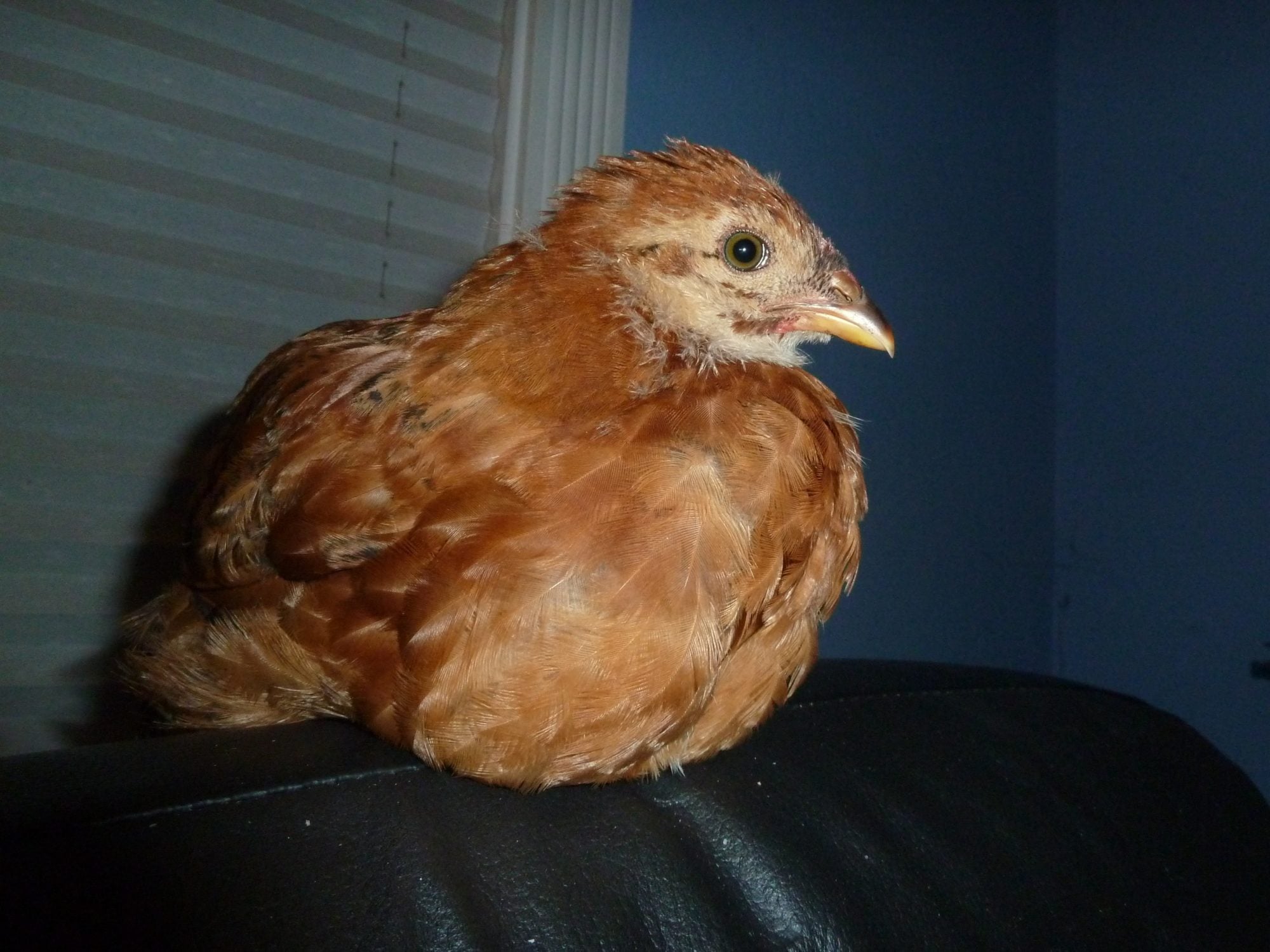 I hatched this (probably) girl about 5 weeks ago under a broody hen. She's one of 4 that hatched from 11 eggs from the farmers market (which were refrigerated, which is why the "grocery store"). I know she hatched from a blue egg, so she's part easter egger. There's apparently a small chance she's part Araucana according to the guy who was working the booth that day, but I'm thinking easter egger mutt mixed with something. I thought Rhode Island Red at first, but now I think she's too light. So, any guesses would be great. She looks to have a walnut comb, but I'm not very experienced with the different types of non-single combs, so I'm not sure. Definitely lumpier than my wyandottes comb was.