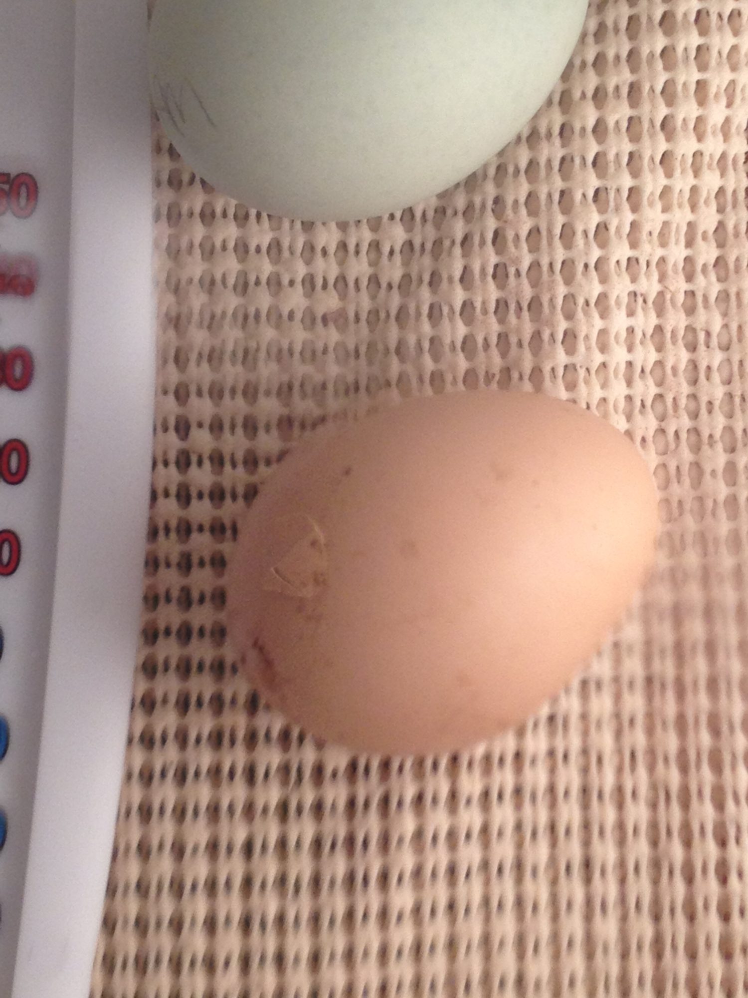 Snatched it up and the poor wee thing is bloody from pecking, raced it inside to check it over and get it in the 'bator and I peeled off some shell so I could see it's little beak. Gave it some time to warm up and it was screaming again so I went to see if it needed help, poor wee things head feathers were glued to it's thigh. Unstuck it with a cotton bud and it popped out onto my hand!