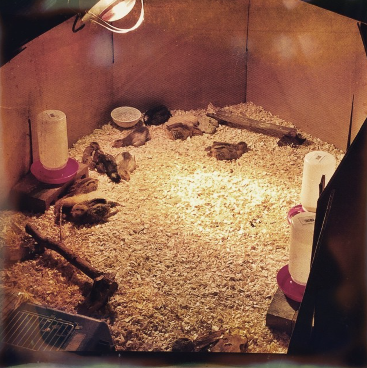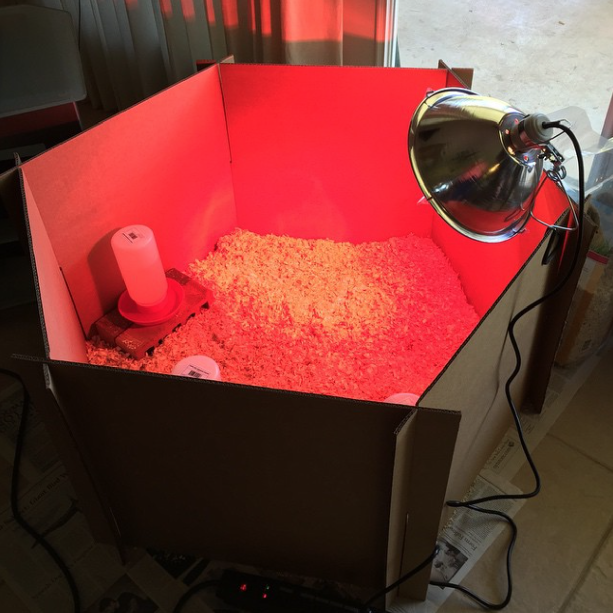 Our little ones are doing very well - they'll be two weeks old tomorrow and are growing like weeds. They started out in this small enclosure: