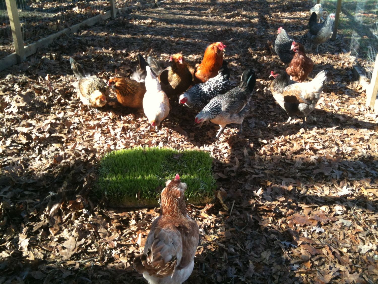 I agree it's time. So I placed the entire brick in the run just to see what would happen before i broke it up for them and they sure did give the stair down for a while. But after breaking it up they started grabbing sprouts and chasing each other around as it hung out of their beaks.
