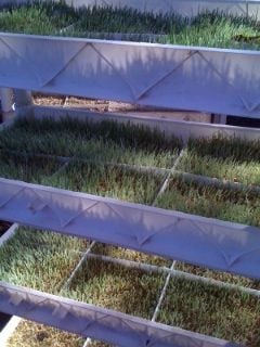 Fodder at day 7 it smells sooooo sweet and yummy it is a mix of wheat and barley,