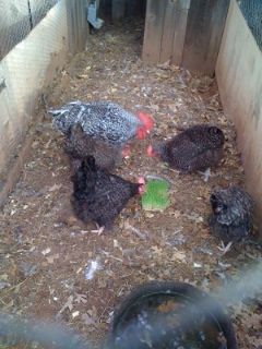 And here is my small breeding pen of Cukoo Marans enjoying their little slice the first day.  You should have heard that roo calling those girls over!!!