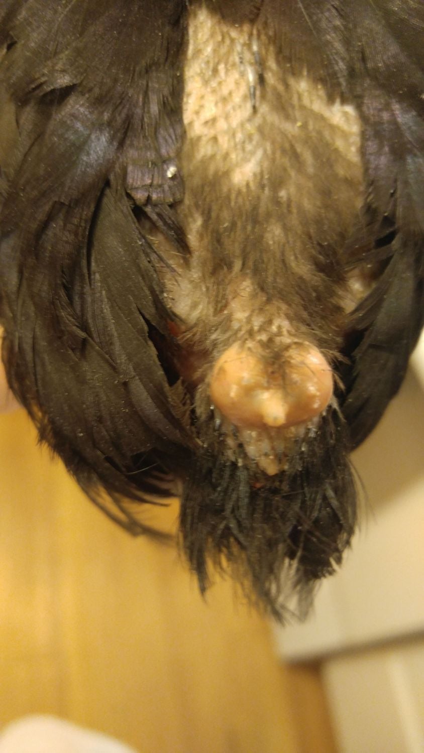 When i got home i saw that one of the Javas were missing a lot of feathers and has (what looks like) a growth around her oil gland. What can I do?