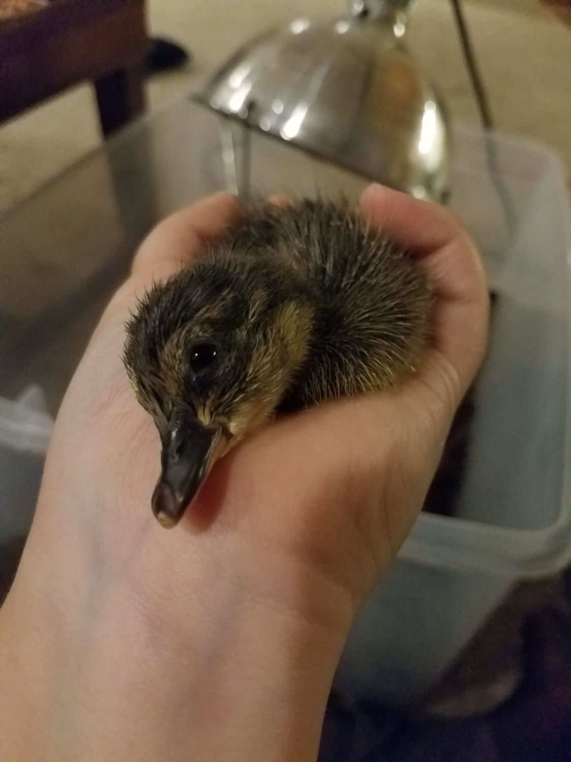 Oh Okay now I remember. How nice you can bring the baby to work with you. Hope your next duckling hatchesYep, I was worried about hatching since my hen was sitting on them and this baby hatched yesterday evening when i got home and we have one more waiting to see when it will hatch. We had a bad third egg that got kicked out of nest that I was worried about. This little one is healthy so far and loves being held. Hoping other one hatches soon so it has friend, until then, its kept company by a stuffy and hanging out with me at work, since my boss gave me ok to bring my portable brooder in.