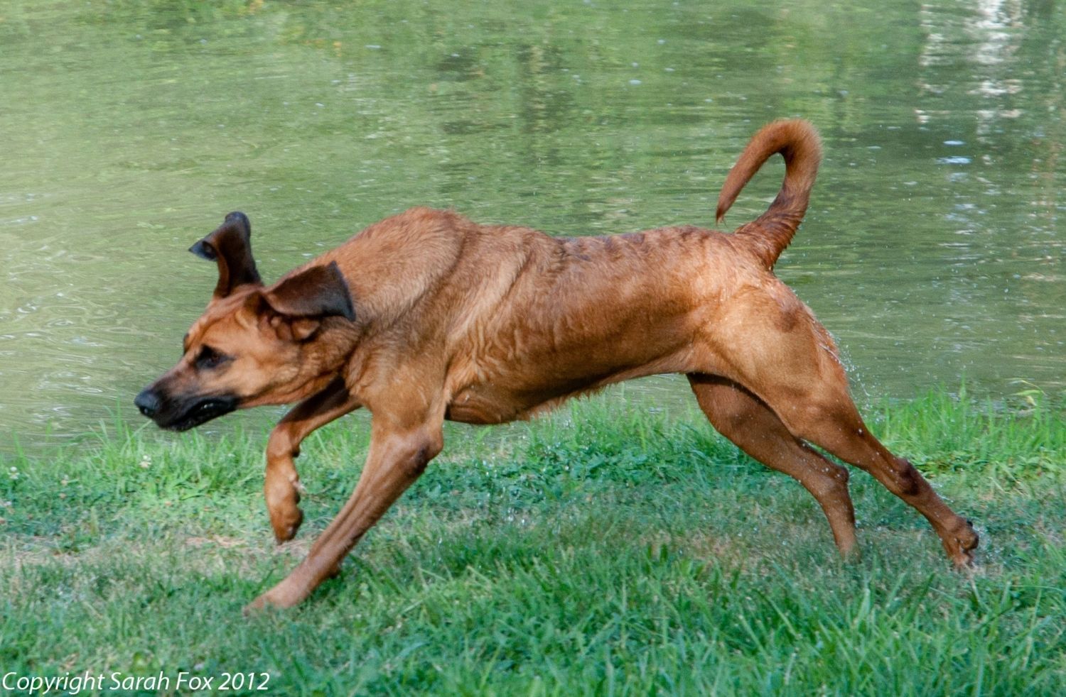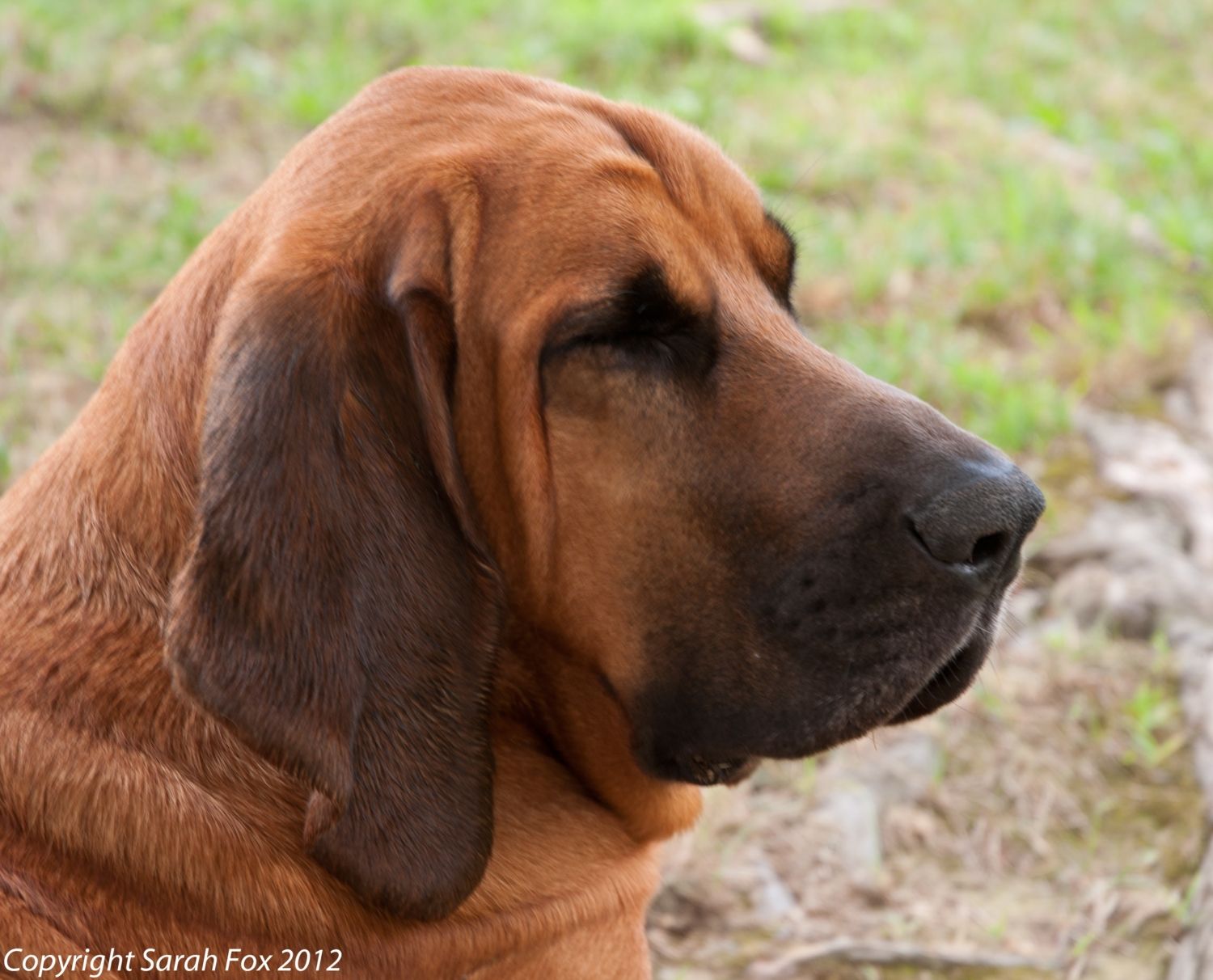 Editing to add: Most pictures you see of Bloodhounds, they've got their heads down tracking, so all that loose skin is pooled up around their heads. When they've got their heads up or are running, the skin flows the other way - totally changes the look.