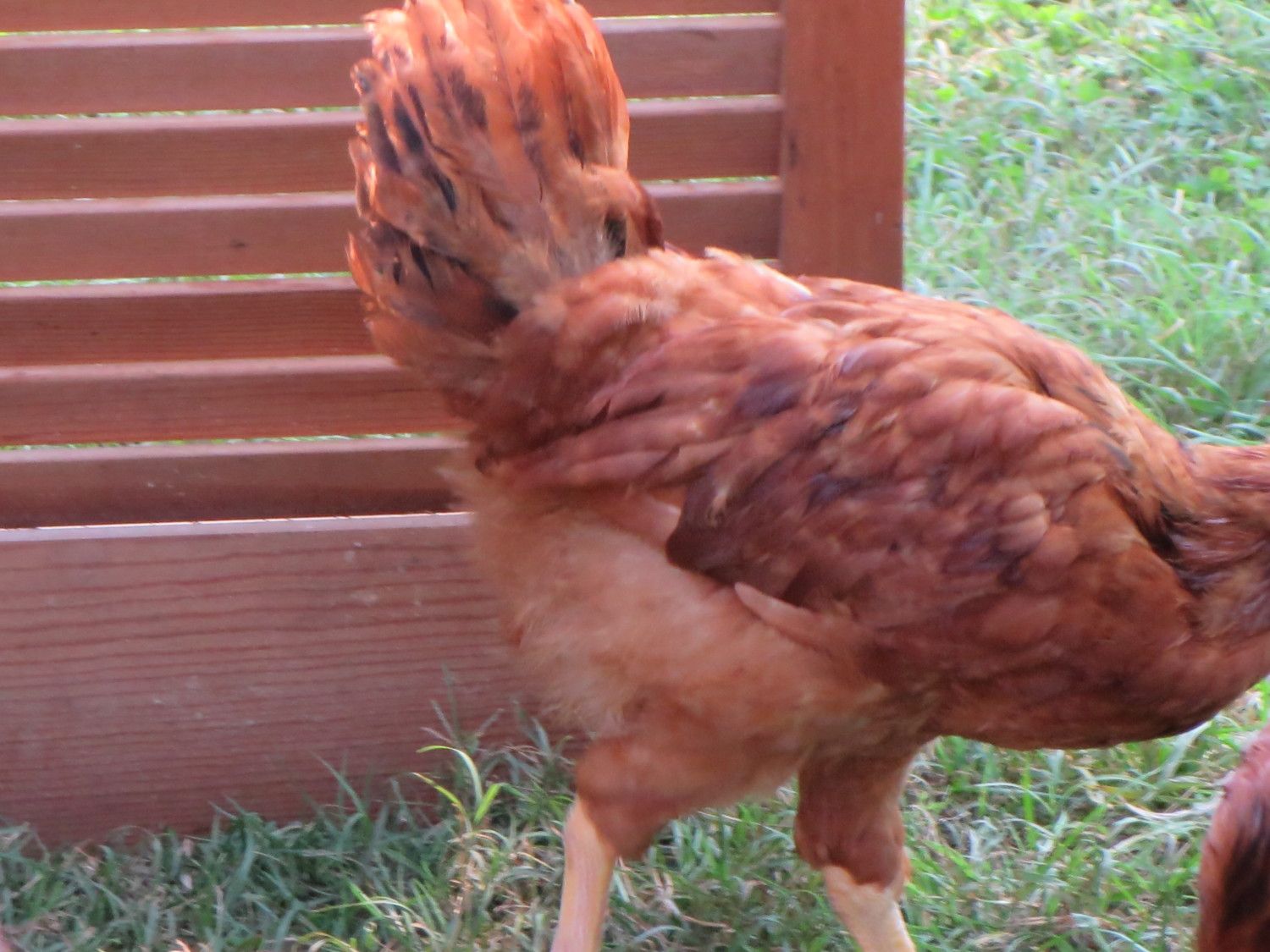 I got stuck with a bunch of roosters, most of which I do not doubt are roosters. This one, though....I'm still holding out hope. Based purely on the feathers, what is your guess? Male or female? This bird is a ten week old Production Red.