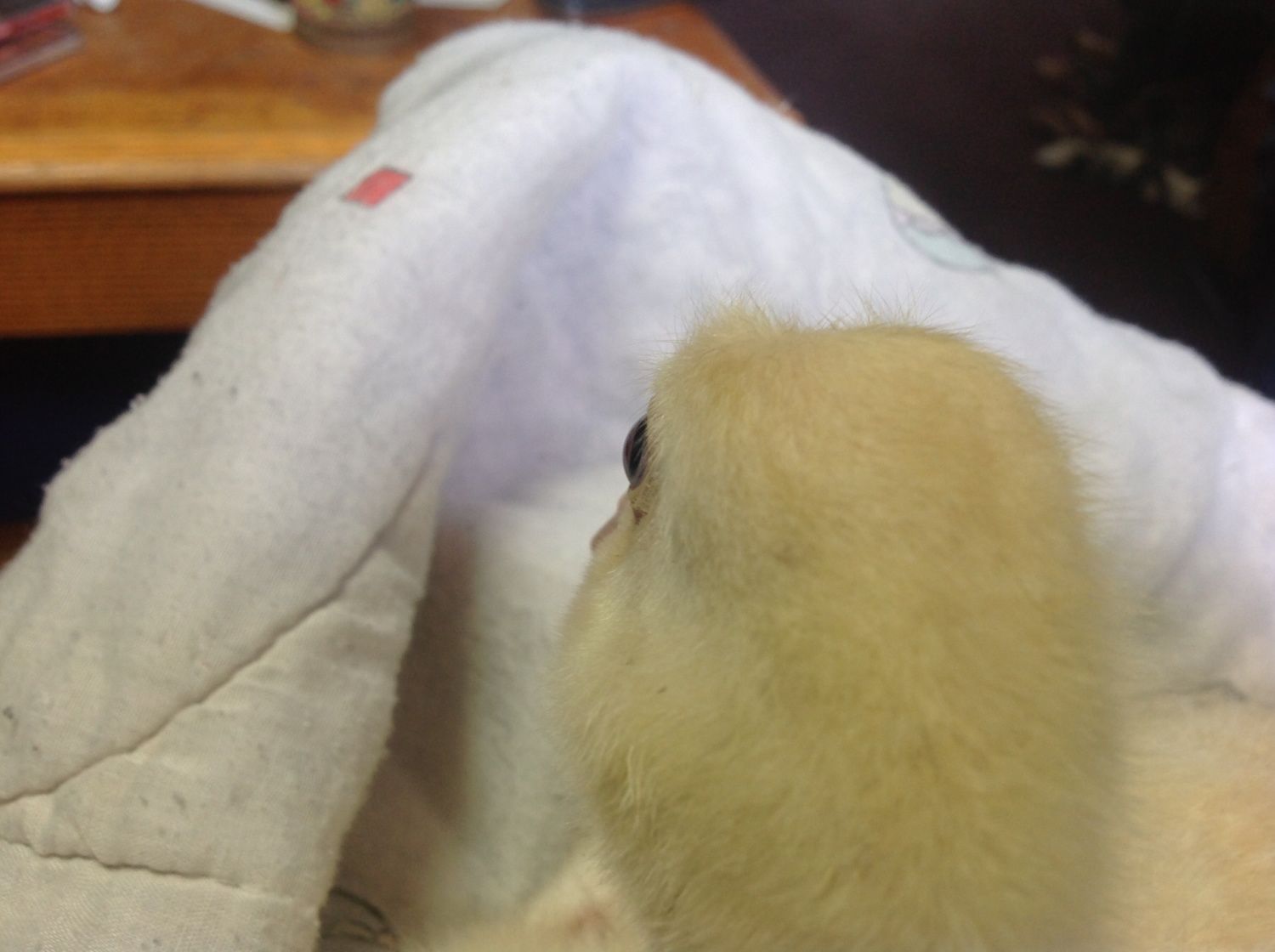 It also has a swirl of fuzz, which makes me think something tufted (his dad paid a ridiculous price for 2 geese, they messed up his order And gave him 15, lol)