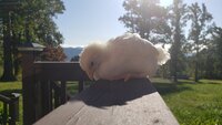So I got 6 chicks 3 weeks ago from rural king totally by accident because they had pasty butt and I felt bad for them... 4 at first I thought might be Delaware's? But now I'm not sure the other 2 I have no clue... first pic is peanutbutter bc I called it pb for a while bc of its terrible pasty butt when i first got this one it literally had a chunk of hard poo the size of a half dollar stuck to its butt