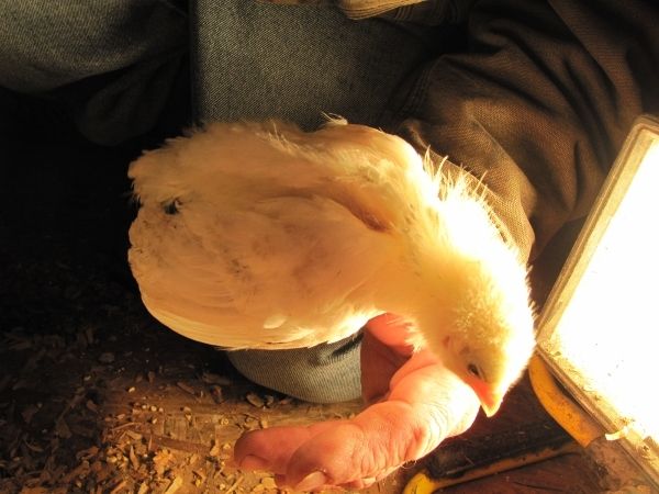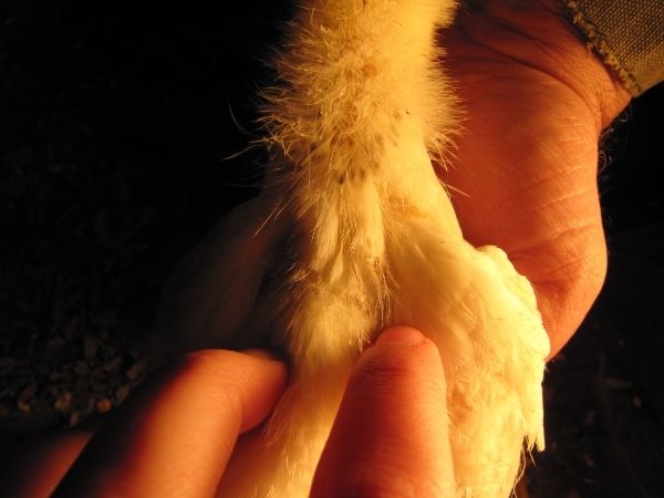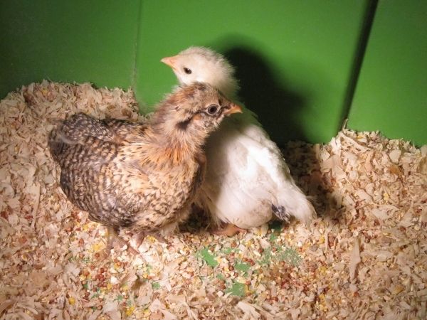 Hello, hello! I recently bought a couple of chicks, one EE and one mystery chick. She is white with a few large black dots on her and a smattering of black/gray on the back of her neck. Age is about 3-4 weeks.