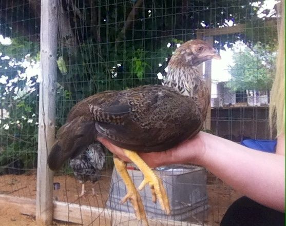 From the feed store straight run bin that ships in from Ideal. Was a dusky chipmunk type initially. Any ideas?