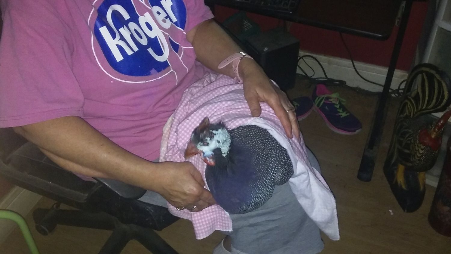 Oh, D - the snow just makes us tough old birds, up here in the north country. I look forward to having an excuse for acting like a little kid to go sledding down our hill. Gotta love it or leave it! Bundle up down there in the south with your cold front of 76 degrees coming through. Maybe wearing some of those guinea fowl leggings will help! Happy Thanksgiving!