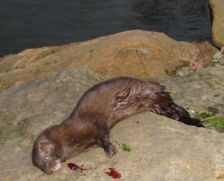 Something has been eating our koi in our pond and we could not find out what. Today our guineas alerted us to a problem at the pond. A mink! It is no longer a problem at the pond. Our guineas surrounded it and it was dispatched.