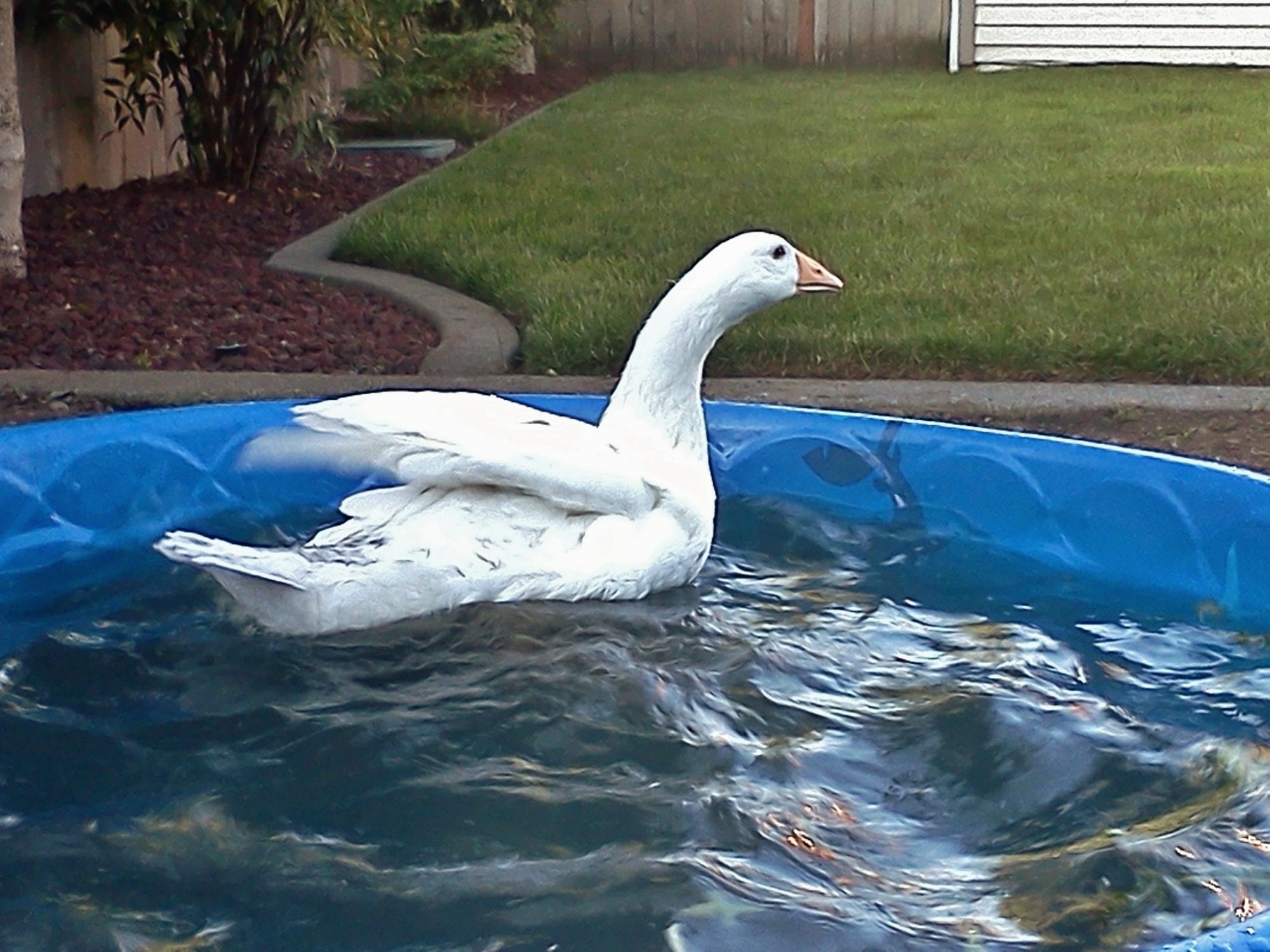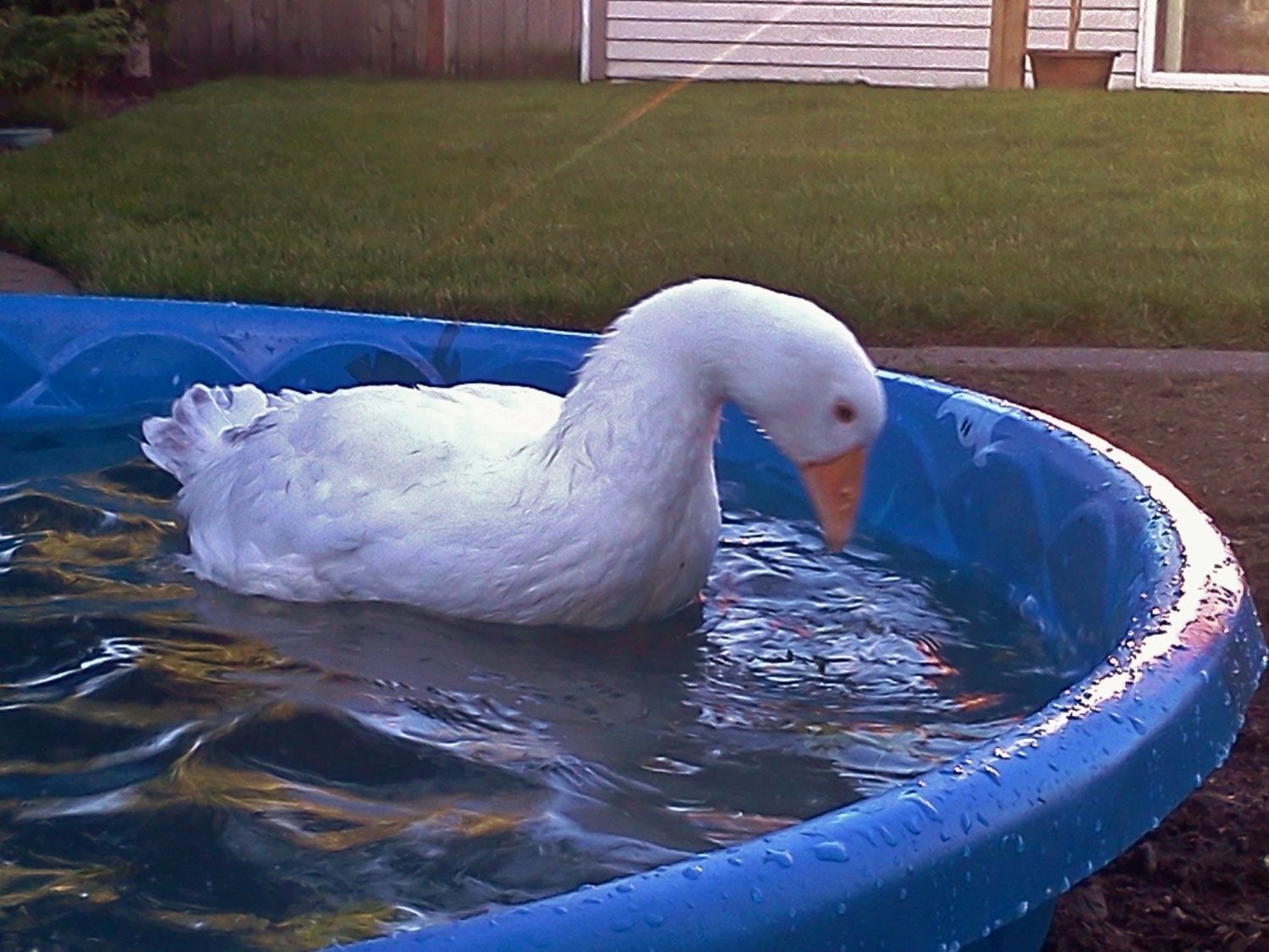 That's hilarious, would have loved a video of that.I finally convinced Lucy to get in but goose took off the other way screaming as soon as she started splashing....I guess I'll try again tomorrow....