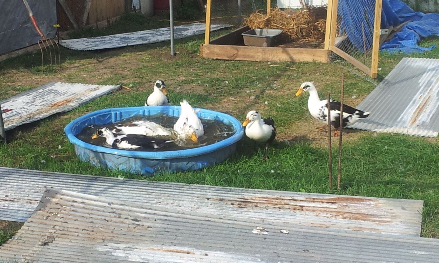 . But I had to share we have 4 pools around the yard and the little dudes (as we call these ones) always are getting ran out of the bigger pools so we placed this one outside their pen. I thought it was just adorable how they finally got their own pool and were playing.