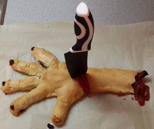 Put our tortilla or olive or whatever you choose for the pupil in the center. Get a toothpick, and with red food dye, trace veins in the white.