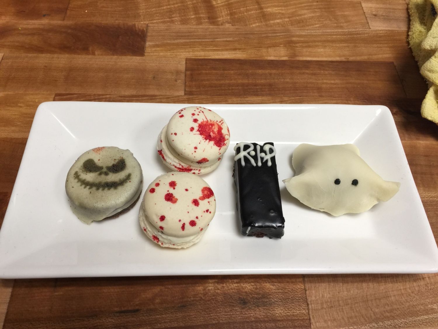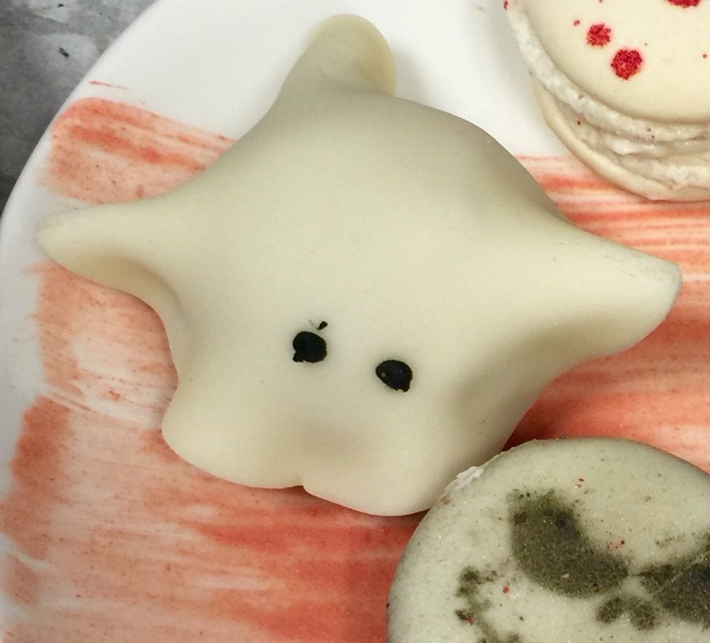 Roll out white fondant and cup into circles big enough to cover your cake balls. Shape them like ghosts using the cake balls as the bodies. Use melted chocolate to make eyes. Voila! You're done