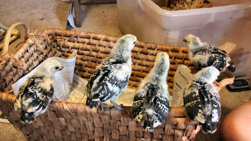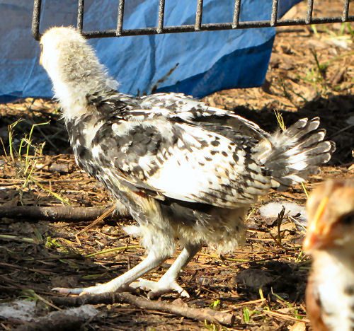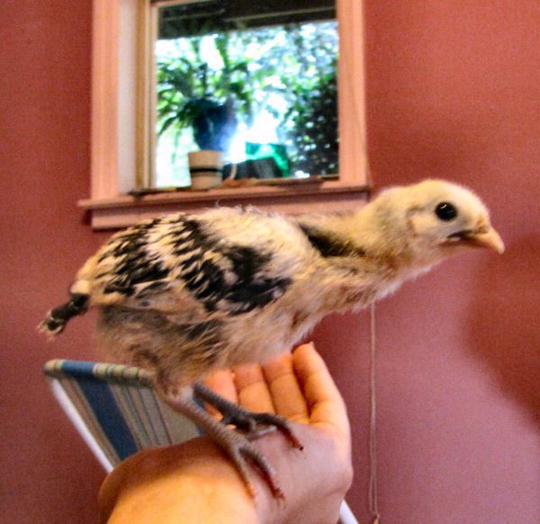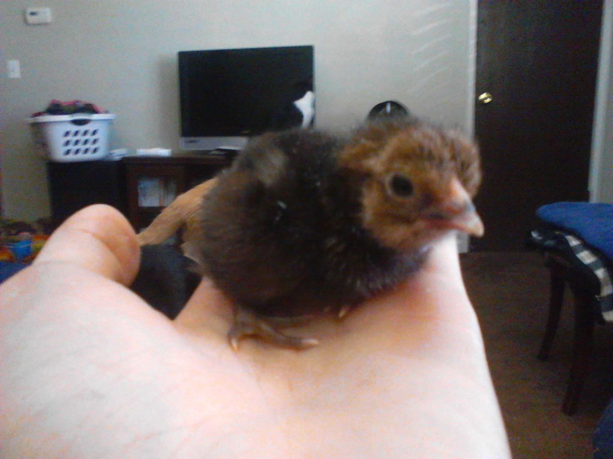 and here is #6 SSH...my 2 year old loves to hold them, and dropped this one when I was not around...so it has a hurt leg...it is getting better every day, but I am keeping it with the silkie babies as the others are with 23 total chicks that include Cuckoo Marans, Spangled Sussex, and EE's...