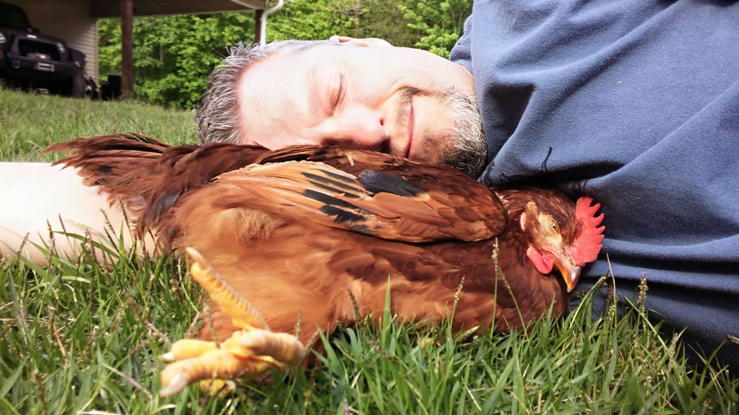 We've had several "handicapped" chickens throughout the years, including crossed beaks, chicks that never grow, and blinded eyes. Currently we have a hen with limited vision in one eye, a rooster with an eye that is blind, and a duck with limited vision in both eyes. But I think Pirate is the most special.