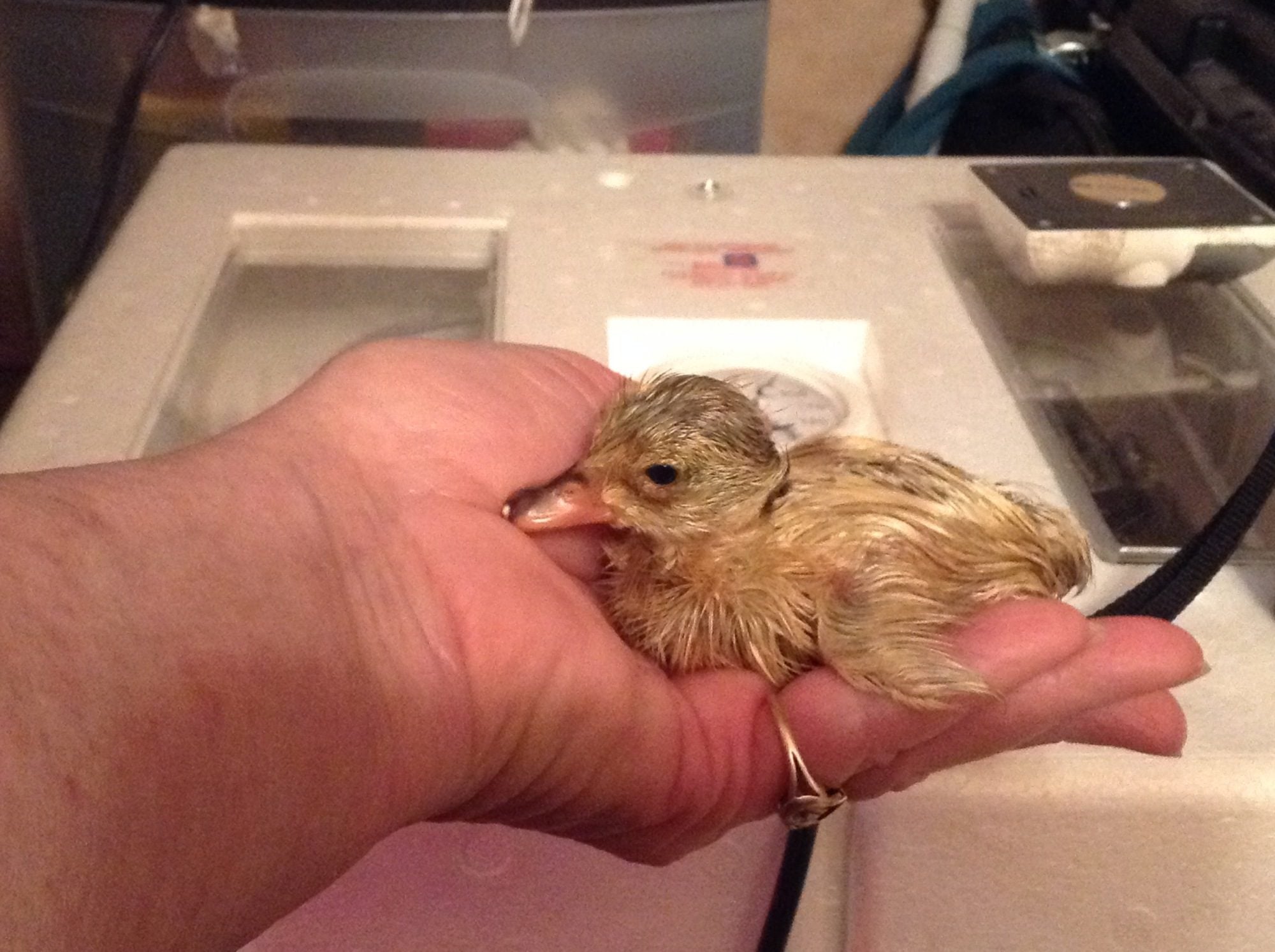 Those 3 are doing great. A 4th has hatched on its own but still has unabsorbed yolk. Do I leave it in bator or put it in a cup in the brooder??