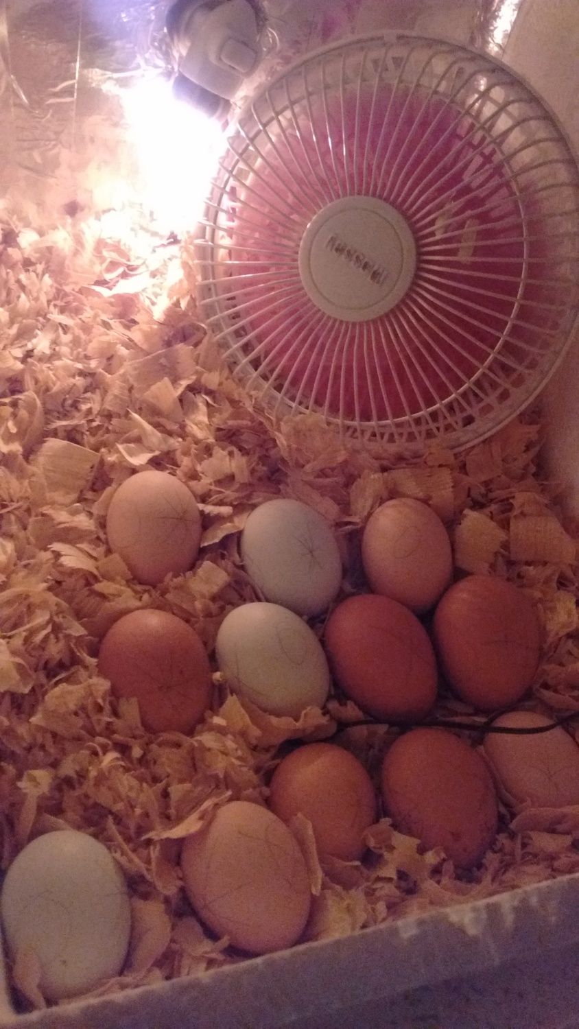 These eggs came from a friend, she has naked necks, RIR, and other types of chickens she dont know what types they are. Wanna guess? These are on day 12 in the incubator.