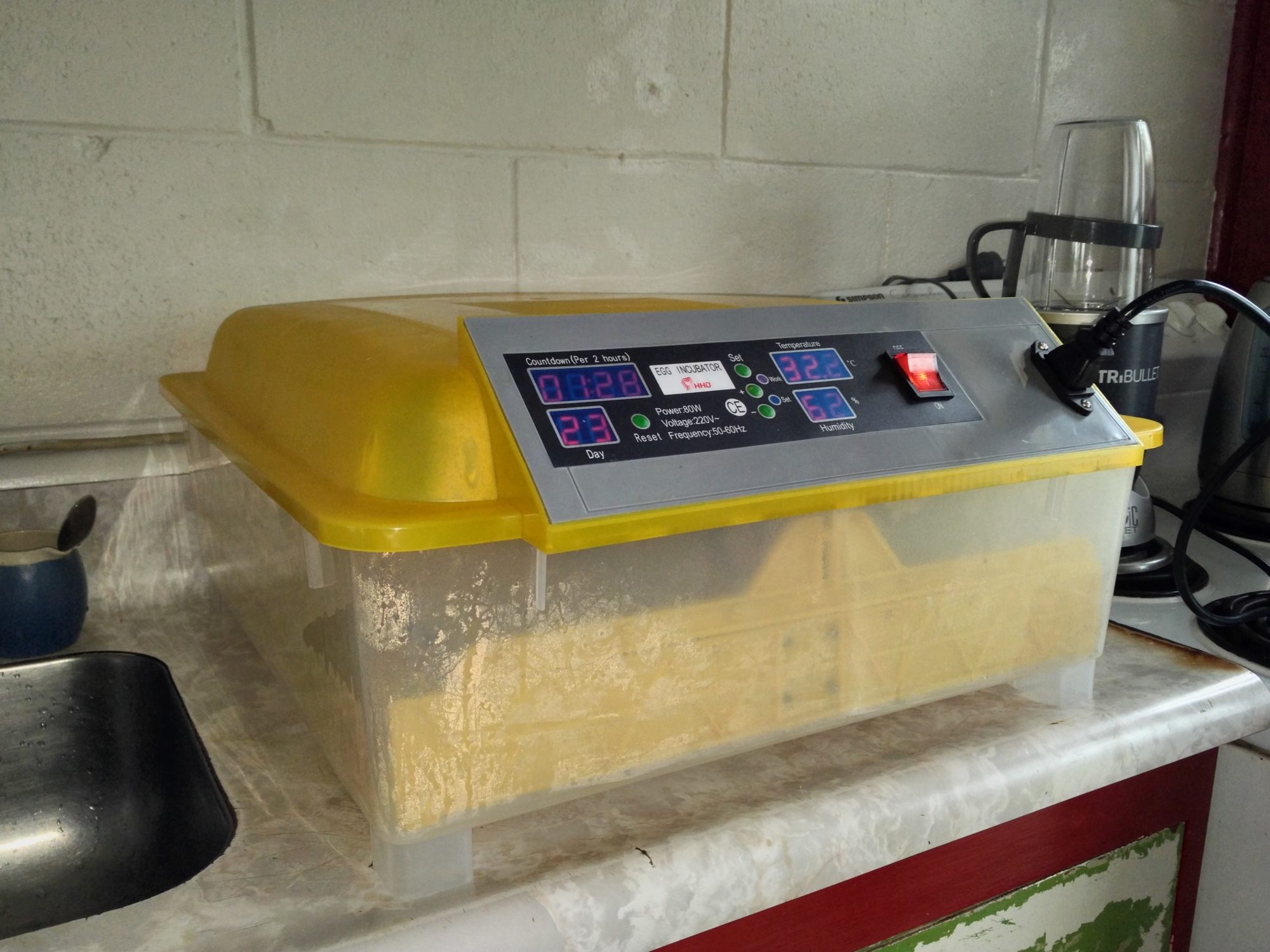 (it's hatching in my home.made polystyrene Incubator in my bathroom.