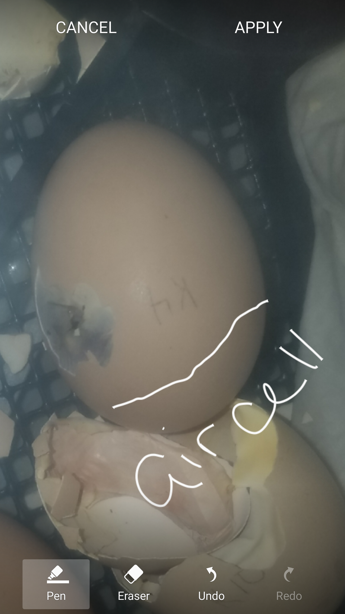 It's so hard congrats glad it's out I lucked out this hatch even w/ not the best air cells I only had one misplaced pip... In the middle under the air cell like yours I took off some shell last night to make sure it could breathe before I went to bed. This morning it was stuck one leg was out it was struggling so I pulled it out and was able to get it unstuck yolk sac absorbed a little blood but it is back in the bator now hoping it makes it. It would never of been able to zip the way it was positioned had been pipped since yesterday morning w/o any progress