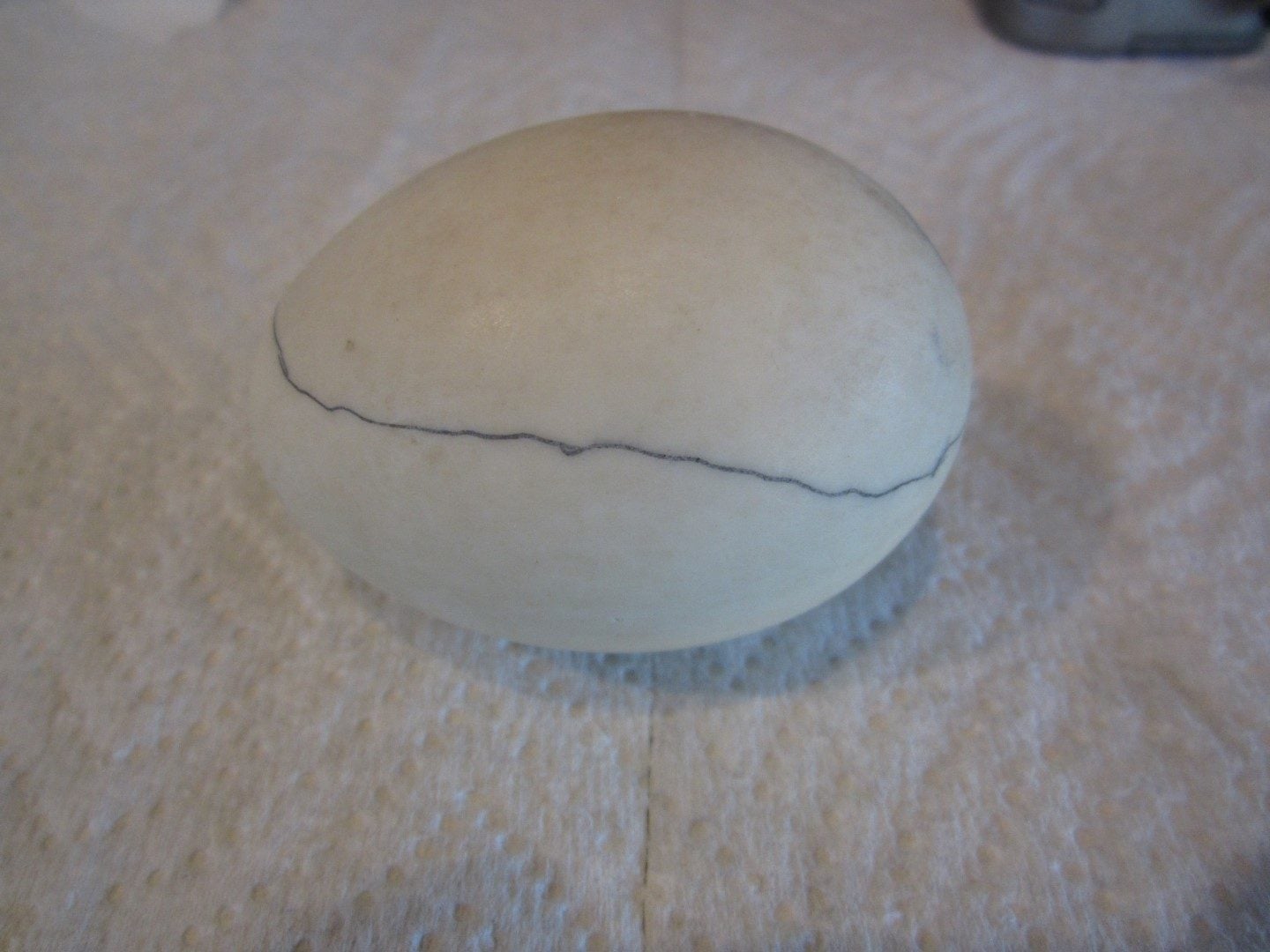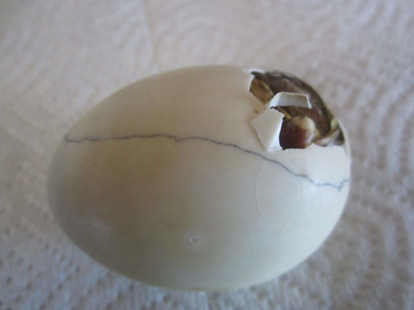 Yesterday I decided to make a pip for it and it looked like maybe it was shrink-wrapped? I cranked up the humidity in the hatcher and now it looks like this. See that little hole? I wonder if that had something to do with it?