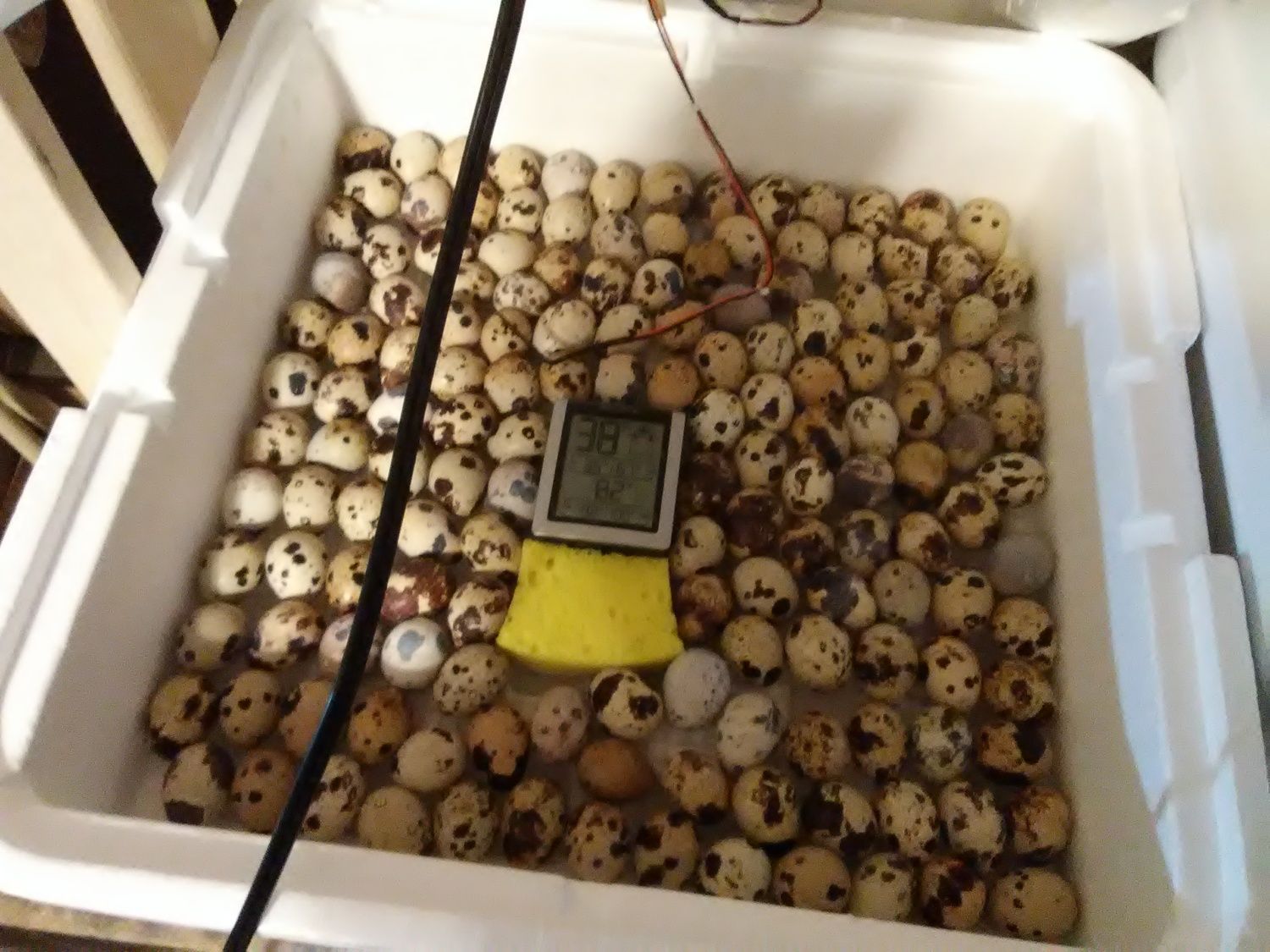 I removed 5 Buckeye eggs and 11 Silkie eggs from the turner today. One of the Buckeye eggs was broken when I received it. There were 2 initially, but 1 didn't develop. I put wax around this one and it was cracked and dented very badly. It is still developing! I will bump the humidity up for lockdown on Sunday. I've dialed down my incubation humidity so hoping for a better hatch. I took them out of the turner at 16 days to see if there is a difference too. I'm picking up 10 Partridge Brahma chicks in a few days and I just set these tonight. That is 154 jumbo meat coutournix quail eggs. Yes, I am a hatchaholic!