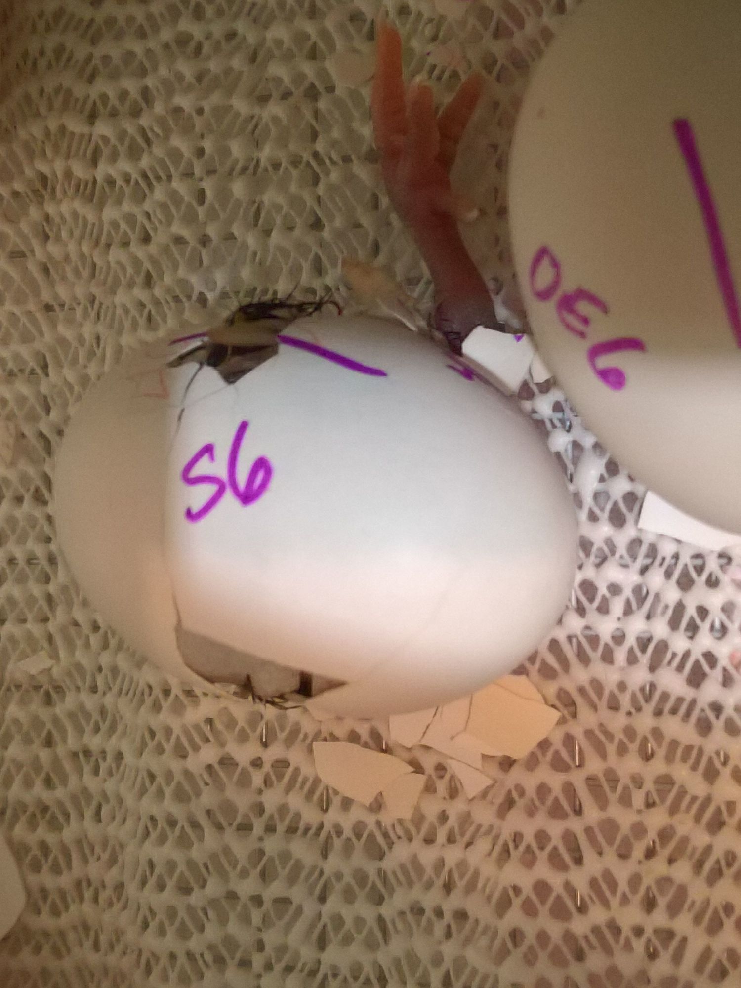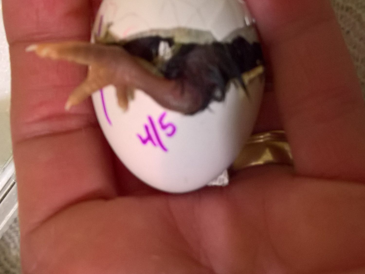 What elevation are you at? I stop turning at the end of day 13. I haven't had an upsidedown pipper, (other than the two that grew too big to turn because I was stupid enough to set my jumbo nn/ee eggs with tiny silkie eggs and they didn't loose enough moisture) in forever.Hatch in progress! Looks like I'm having better success this time around. So much for needing higher humidity if at higher elevations. I lowered my incubation humidity to 45%-50% and my hatch humidity to about 60% and let it rise naturally as the chicks hatch. 3 of my 5 Buckeyes hatched, the other 2 looked like they quit a couple of days before lockdown. They pipped and zipped within 6 hours and I have 8 of 11 silkies pipped right now. Polish/Sultans are due to start pipping tomorrow. I also removed eggs from the turner at 16 days and so far no wrong end pips! Here are my beautiful Buckeyes.![]()