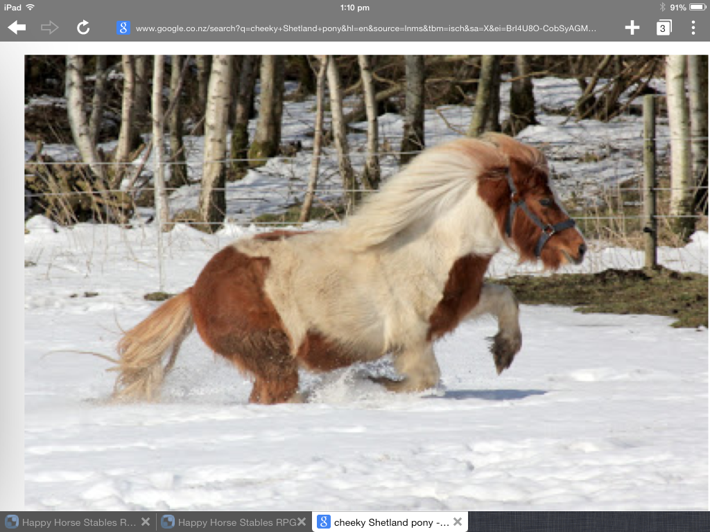 HORSE Name: Peanut Breed: Shetland History: Was brought from a well known breeder by a lady for her 3 year old daughter to be led around on. It was quickly found out that no amount of training would make this little rascal into a perfect lead rien pony! Was sold to numerous other people and eventualy ended up here Personality: history says most of it. Has little anoying habbits, such as grabbing the lead rope every time he is geing led, that make handleing him all that much more difficult. Age: 7 Crush: Mate: none Foals: Pic: Owner: I dont know... Owner type: I dont know... Horse job: Currently being 'rebroken in' and trained User name: silver bantam
